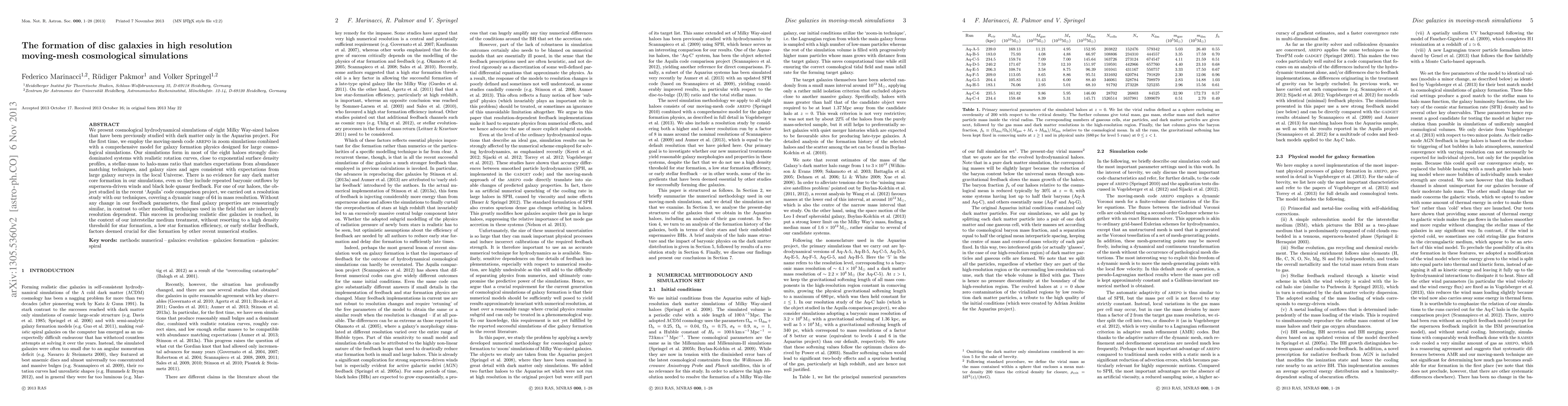 We present cosmological hydrodynamical simulations of eight Milky Way-sized haloes that have been previously studied with dark matter only in the Aquarius project. For the first time, we employ the moving-mesh code AREPO in zoom simulations combined with a comprehensive model for galaxy formation physics designed for large0 cosmological simulations. Our simulations form in most of the eight haloes strongly disc-dominated systems with realistic rotation curves, close to exponential surface density profiles, a stellar-mass to halo-mass ratio that matches expectations from abundance matching techniques, and galaxy sizes and ages consistent with expectations from large galaxy surveys in the local Universe. There is no evidence for any dark matter core formation in our simulations, even so they include repeated baryonic outflows by supernova-driven winds and black hole quasar feedback. For one of our haloes, the object studied in the recent `Aquila' code comparison project, we carried out a resolution study with our techniques, covering a dynamic range of 64 in mass resolution. Without any change in our feedback parameters, the final galaxy properties are reassuringly similar, in contrast to other modelling techniques used in the field that are inherently resolution dependent. This success in producing realistic disc galaxies is reached, in the context of our interstellar medium treatment, without resorting to a high density threshold for star formation, a low star formation efficiency, or early stellar feedback, factors deemed crucial for disc formation by other recent numerical studies.