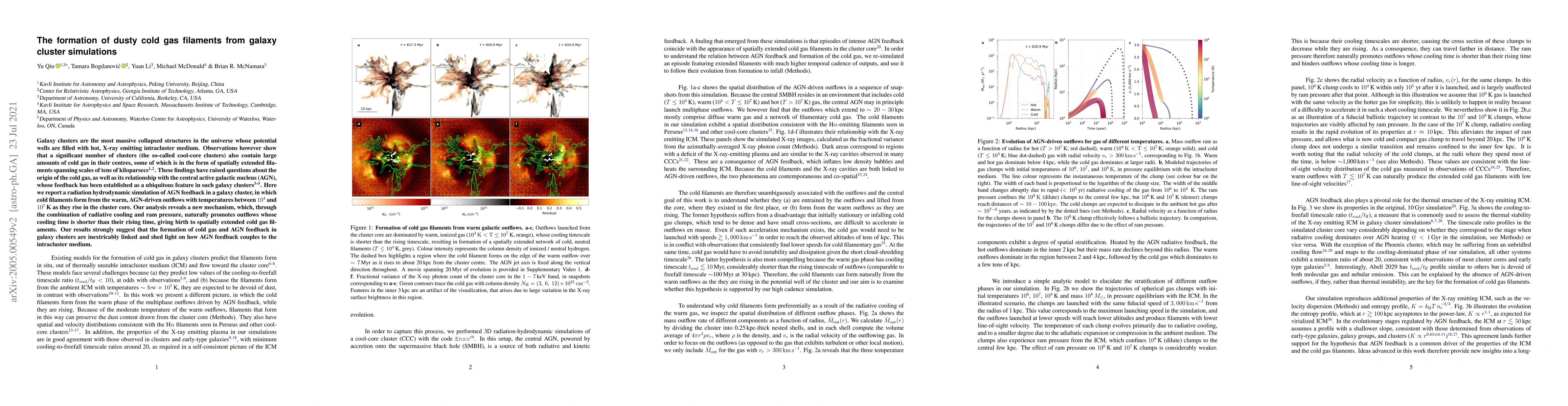 This paper reports on simulations showing that cold gas filaments in galaxy clusters form from AGN-driven warm outflows, driven by radiative cooling and ram pressure. The study reveals a new mechanism linking AGN feedback and the formation of cold gas filaments, suggesting a strong coupling between AGN feedback and the intracluster medium.