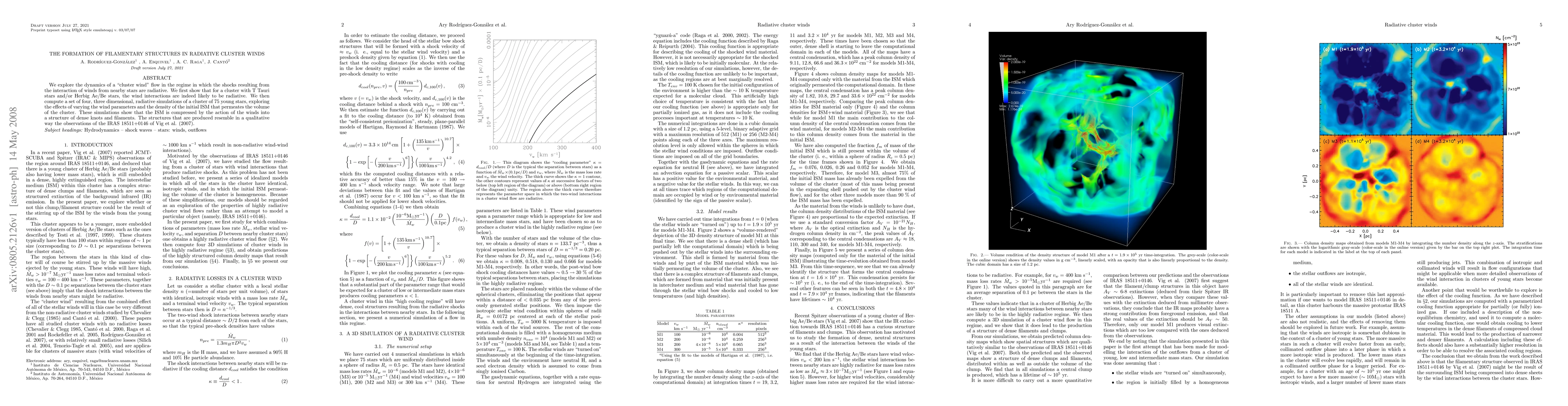 We explore the dynamics of a ``cluster wind'' flow in the regime in which the shocks resulting from the interaction of winds from nearby stars are radiative. We first show that for a cluster with T Tauri stars and/or Herbig Ae/Be stars, the wind interactions are indeed likely to be radiative. We then compute a set of four, three dimensional, radiative simulations of a cluster of 75 young stars, exploring the effects of varying the wind parameters and the density of the initial ISM that permeates the volume of the cluster. These simulations show that the ISM is compressed by the action of the winds into a structure of dense knots and filaments. The structures that are produced resemble in a qualitative way the observations of the IRAS 18511+0146 of Vig et al. (2007).