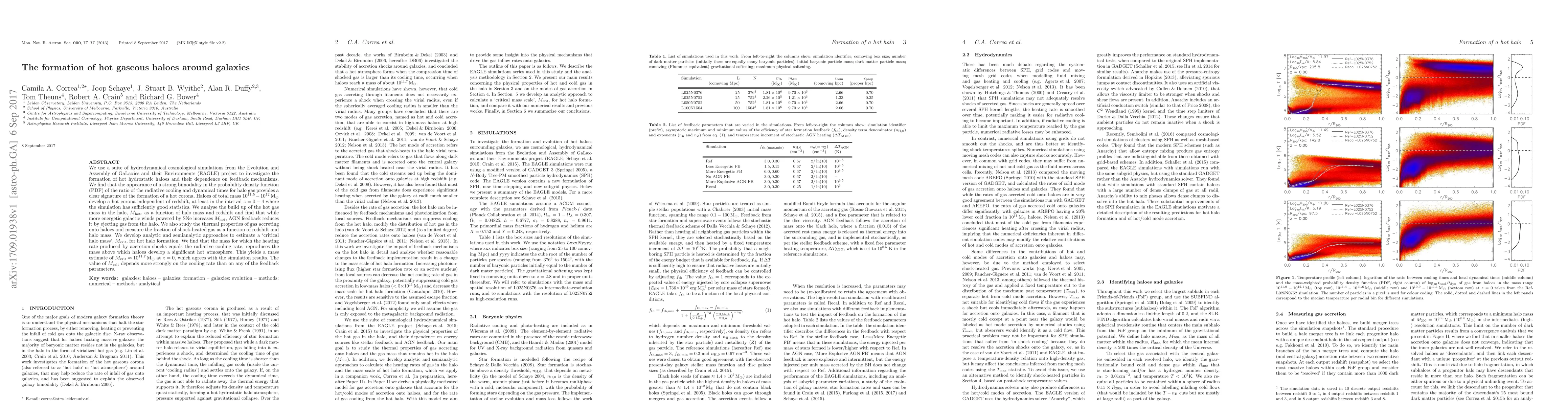 This paper investigates the formation of hot gaseous haloes around galaxies using EAGLE simulations, finding a bimodality in the ratio of radiative cooling and dynamical times indicating hot corona formation. It identifies a critical halo mass of $M_{\rm{crit}} \approx 10^{11.7}{\rm{M}}_{\odot}$ at $z=0$ for significant hot atmosphere development, with galactic winds increasing and AGN feedback decreasing hot gas mass.