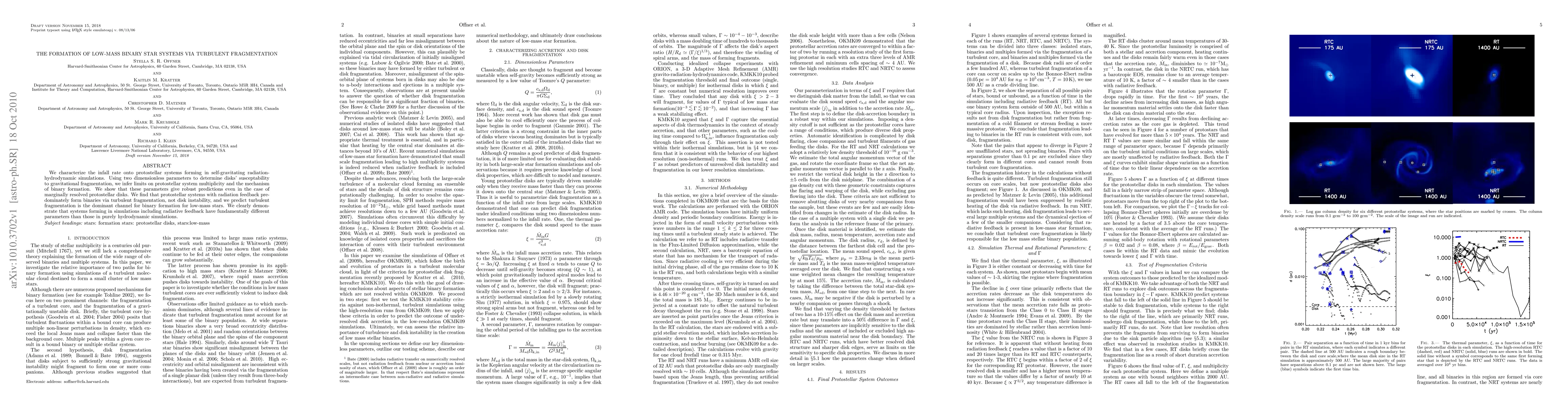 We characterize the infall rate onto protostellar systems forming in self-gravitating radiation-hydrodynamic simulations. Using two dimensionless parameters to determine disks' susceptability to gravitational fragmentation, we infer limits on protostellar system multiplicity and the mechanism of binary formation. We show that these parameters give robust predictions even in the case of marginally resolved protostellar disks. We find that protostellar systems with radiation feedback predominately form binaries via turbulent fragmentation, not disk instability, and we predict turbulent fragmentation is the dominant channel for binary formation for low-mass stars. We clearly demonstrate that systems forming in simulations including radiative feedback have fundamentally different parameters than those in purely hydrodynamic simulations.