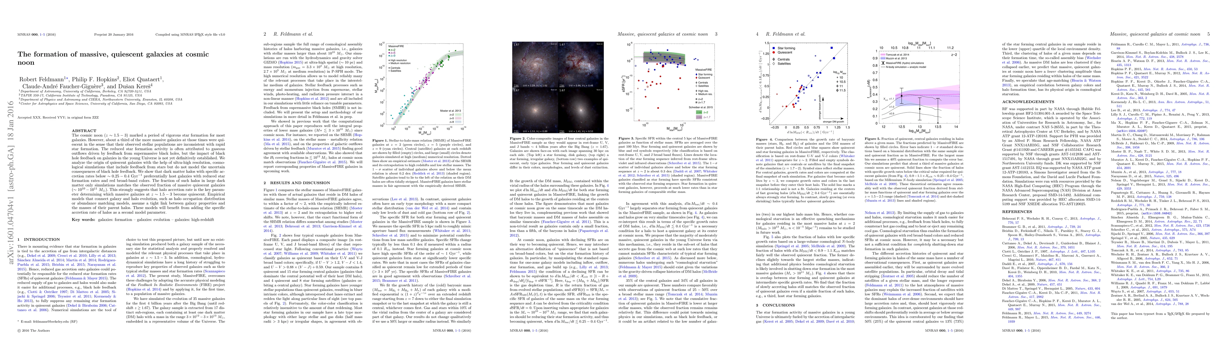 This paper investigates the formation of massive, quiescent galaxies during cosmic noon, finding that low accretion rates in dark matter halos, rather than black hole feedback, are the primary factor leading to reduced star formation rates. The study uses high-resolution simulations to show that galaxies in halos with accretion rates below ~0.25-0.4 per Gyr exhibit quiescent behavior, matching observations of massive quiescent galaxies at z~1.5-3.