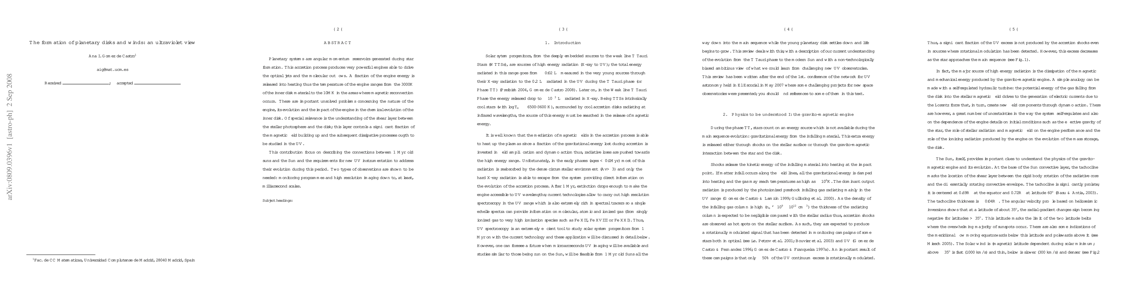 Planetary systems are angular momentum reservoirs generated during star formation. This accretion process produces very powerful engines able to drive the optical jets and the molecular outflows. A fraction of the engine energy is released into heating thus the temperature of the engine ranges from the 3000K of the inner disk material to the 10MK in the areas where magnetic reconnection occurs. There are important unsolved problems concerning the nature of the engine, its evolution and the impact of the engine in the chemical evolution of the inner disk. Of special relevance is the understanding of the shear layer between the stellar photosphere and the disk; this layer controls a significant fraction of the magnetic field building up and the subsequent dissipative processes ougth to be studied in the UV. This contribution focus on describing the connections between 1 Myr old suns and the Sun and the requirements for new UV instrumentation to address their evolution during this period. Two types of observations are shown to be needed: monitoring programmes and high resolution imaging down to, at least, milliarsecond scales.
