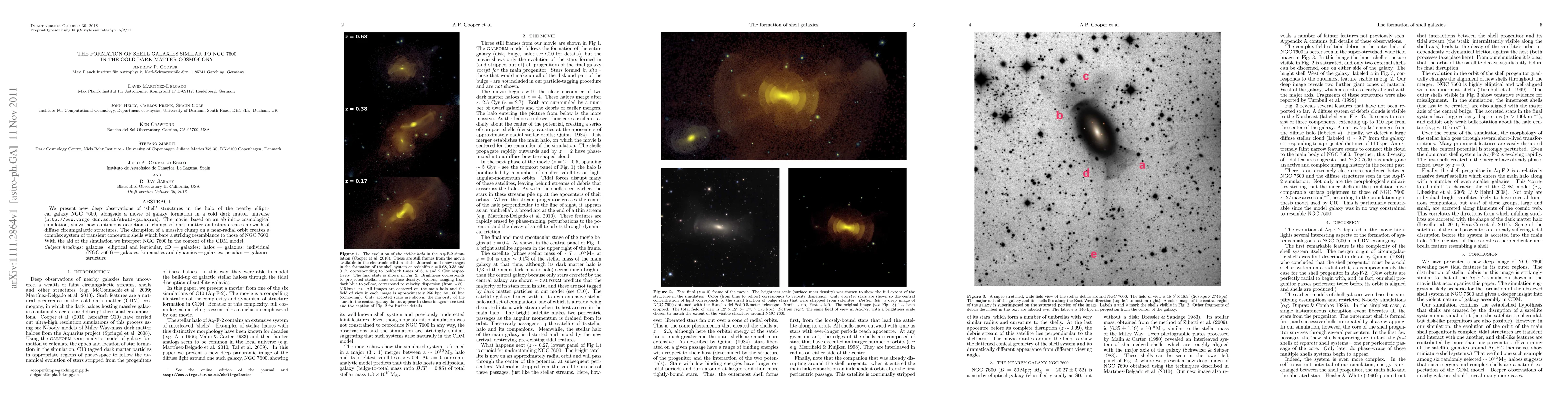 We present new deep observations of 'shell' structures in the halo of the nearby elliptical galaxy NGC 7600, alongside a movie of galaxy formation in a cold dark matter universe (available at http://www.virgo.dur.ac.uk/shell-galaxies). The movie, based on an ab initio cosmological simulation, shows how continuous accretion of clumps of dark matter and stars creates a swath of diffuse circumgalactic structures. The disruption of a massive clump on a near-radial orbit creates a complex system of transient concentric shells which bare a striking resemblance to those of NGC 7600. With the aid of the simulation we interpret NGC 7600 in the context of the CDM model.