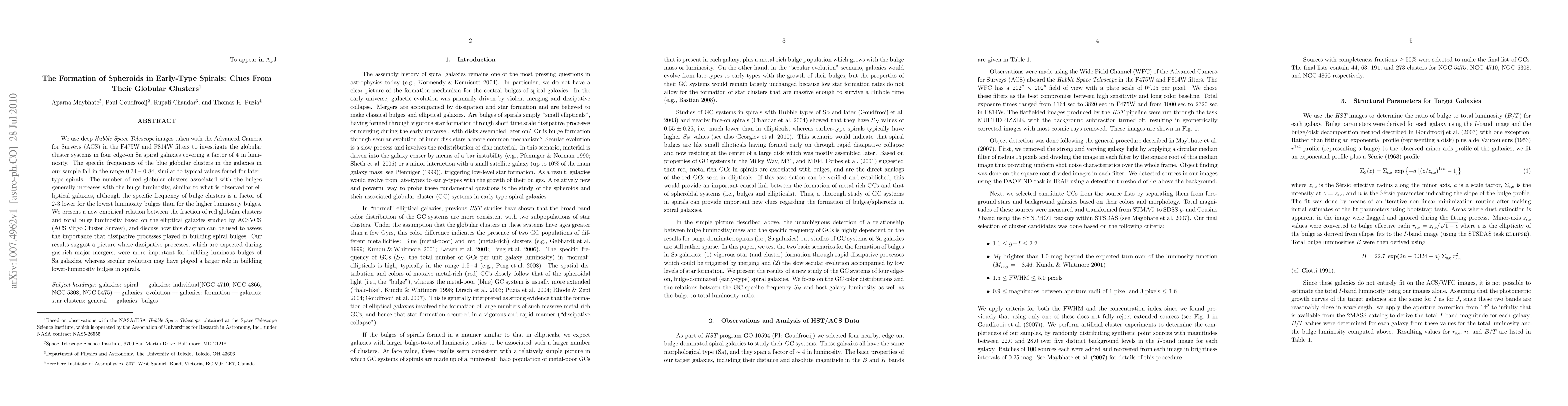 This study investigates the formation of spheroids in early-type spirals using Hubble Space Telescope images, finding that dissipative processes were more important for building luminous bulges, while secular evolution played a larger role in lower-luminosity bulges.