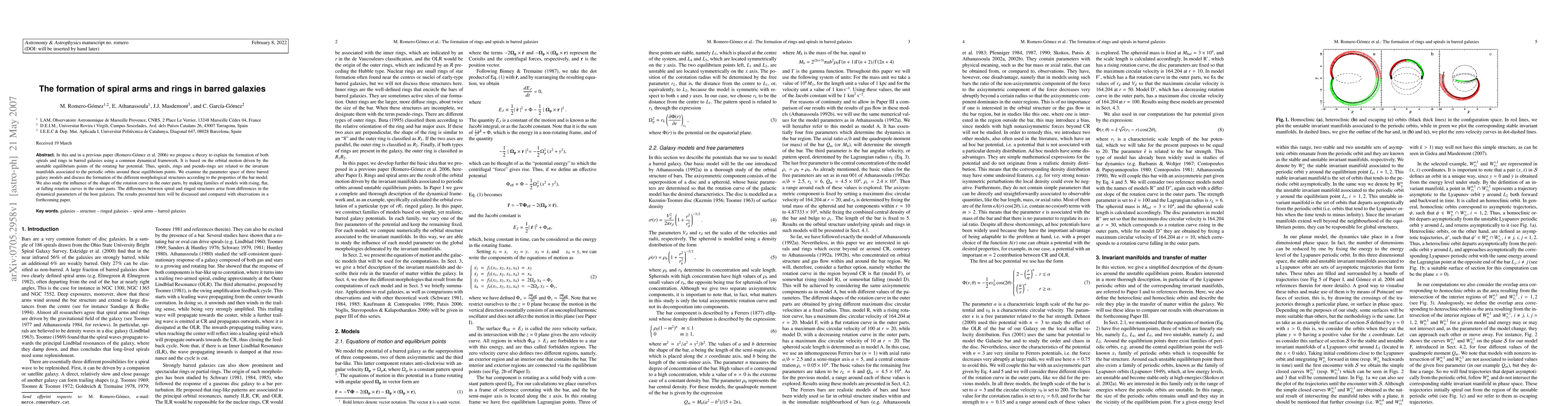 The paper introduces a novel dynamical framework linking the formation of spiral arms and rings in barred galaxies to the invariant manifolds of periodic orbits around unstable equilibrium points in the bar potential.