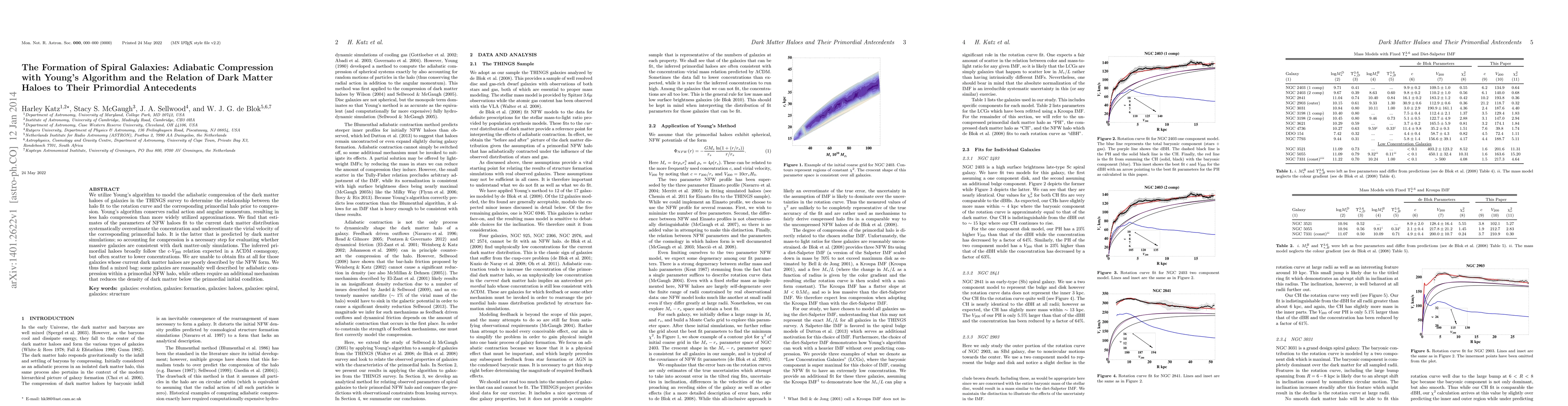 This paper uses Young's algorithm to model the adiabatic compression of dark matter haloes in spiral galaxies, finding that current halo parameters overestimate primordial concentration and underestimate virial velocity. The study concludes that while some galaxies fit the expected c-V200 relation, others suggest additional mechanisms are needed to explain their dark matter distribution.