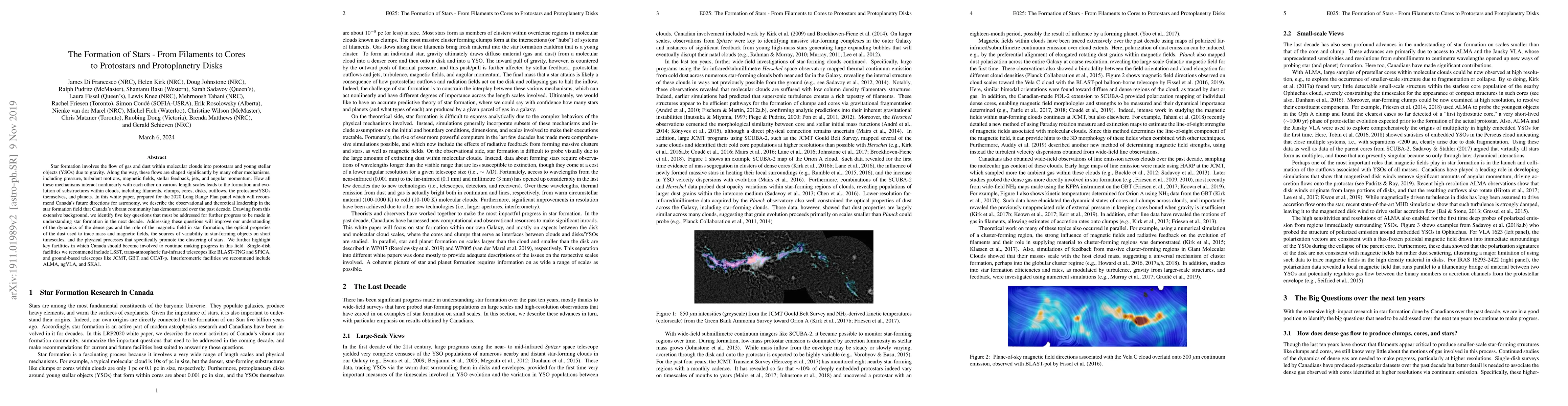 This paper reviews Canada's leadership in star formation research, emphasizing the complex interplay of gravity, pressure, turbulence, and magnetic fields in forming stars and protoplanetary disks. It identifies five key questions for future progress and recommends key facilities to maintain Canada's role in advancing this field.