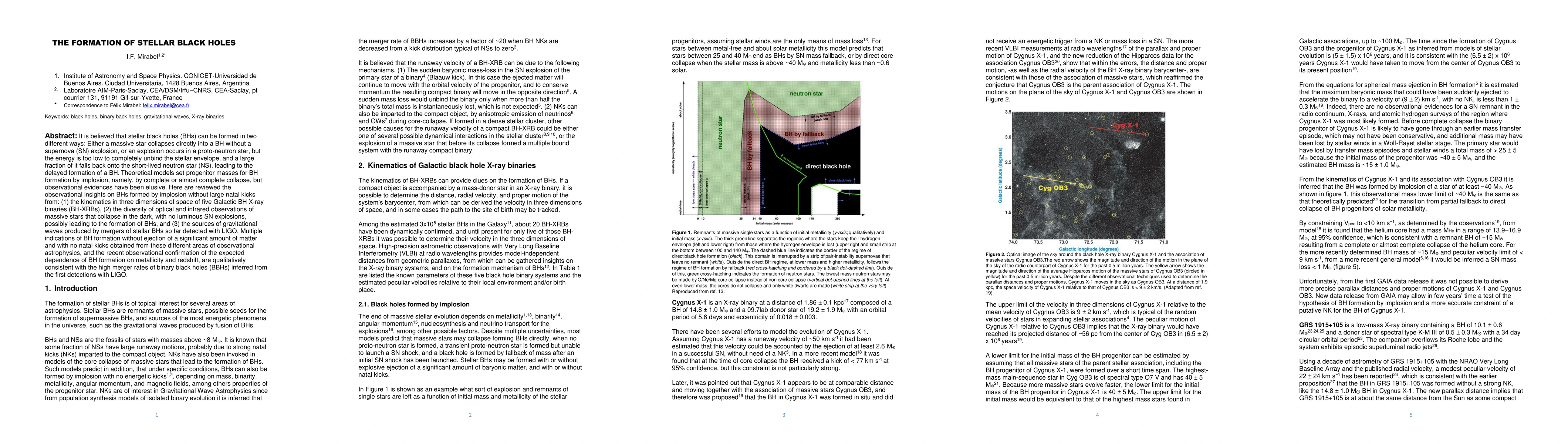 The research brings together diverse observational evidence from kinematics, optical/infrared observations, and gravitational wave detections to support the formation of stellar black holes by implosion, offering a comprehensive view of this formation mechanism.