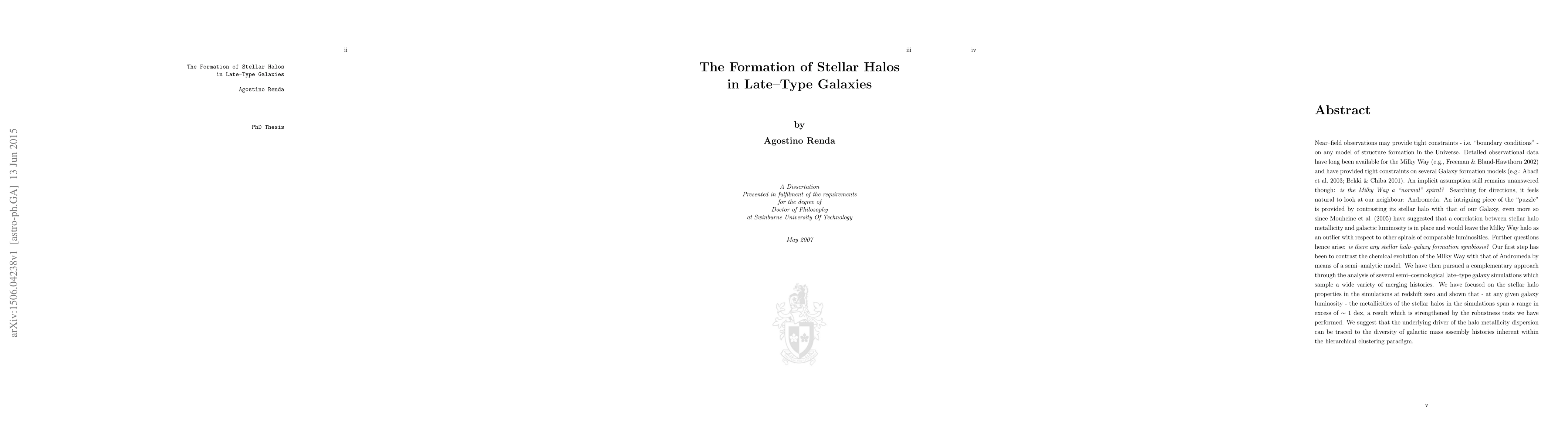 Near-field observations may provide tight constraints - i.e. "boundary conditions" - on any model of structure formation in the Universe. Detailed observational data have long been available for the Milky Way (e.g. Freeman $\&$ Bland-Hawthorn 2002) and have provided tight constraints on several Galaxy formation models (e.g. Abadi et al. 2003, Bekki $\&$ Chiba 2001). An implicit assumption still remains unanswered though: is the Milky Way a "normal" spiral? Searching for directions, it feels natural to look at our neighbour: Andromeda. An intriguing piece of the puzzle is provided by contrasting its stellar halo with that of our Galaxy, even more so since Mouhcine et al. (2005) have suggested that a correlation between stellar halo metallicity and galactic luminosity is in place and would leave the Milky Way halo as an outlier with respect to other spirals of comparable luminosities. Further questions hence arise: is there any stellar halo-galaxy formation symbiosis? Our first step has been to contrast the chemical evolution of the Milky Way with that of Andromeda by means of a semi-analytic model. We have then pursued a complementary approach through the analysis of several semi-cosmological late-type galaxy simulations which sample a wide variety of merging histories. We have focused on the stellar halo properties in the simulations at redshift zero and shown that - at any given galaxy luminosity - the metallicities of the stellar halos in the simulations span a range in excess of $\sim$ 1 dex, a result which is strengthened by the robustness tests we have performed. We suggest that the underlying driver of the halo metallicity dispersion can be traced to the diversity of galactic mass assembly histories inherent within the hierarchical clustering paradigm.