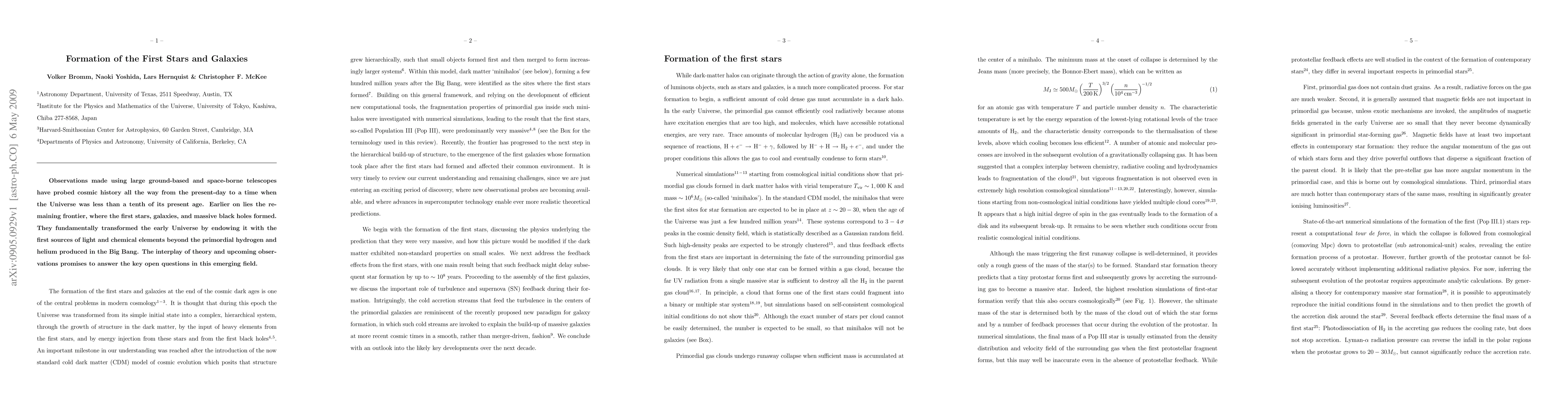 Observations made using large ground-based and space-borne telescopes have probed cosmic history all the way from the present-day to a time when the Universe was less than a tenth of its present age. Earlier on lies the remaining frontier, where the first stars, galaxies, and massive black holes formed. They fundamentally transformed the early Universe by endowing it with the first sources of light and chemical elements beyond the primordial hydrogen and helium produced in the Big Bang. The interplay of theory and upcoming observations promises to answer the key open questions in this emerging field.