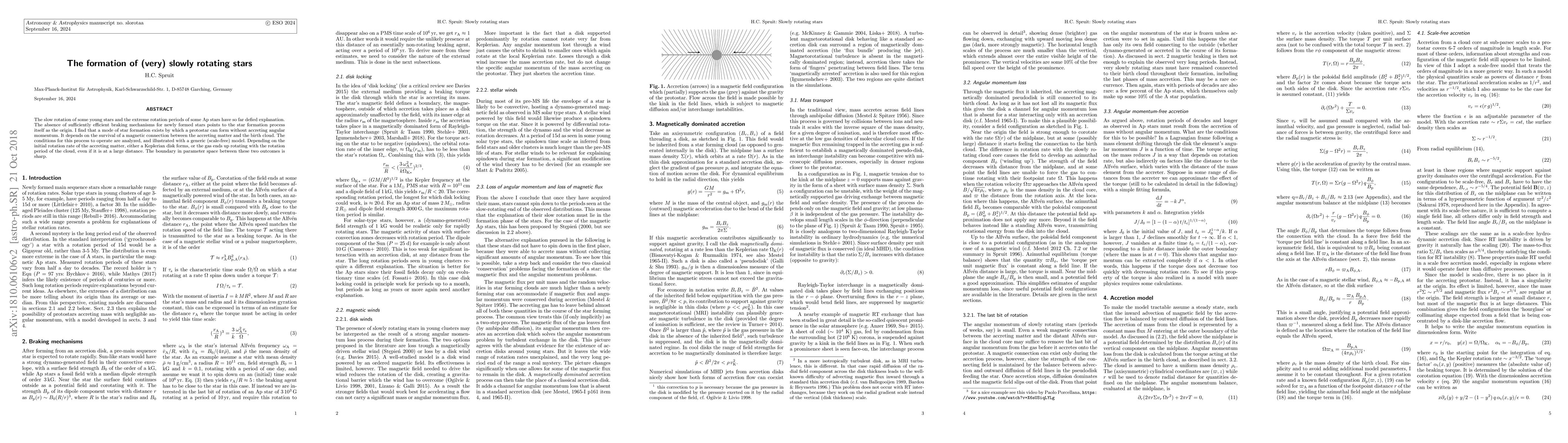 The slow rotation of some young stars and the extreme rotation periods of some Ap stars have so far defied explanation. The absence of sufficiently efficient braking mechanisms for newly formed stars points to the star formation process itself as the origin. I find that a mode of star formation exists by which a protostar can form without accreting angular momentum. It depends on the survival of a magnetic connection between the accreting matter and the birth cloud. The conditions for this process to operate are analyzed, and illustrated with a generic (scale-free) model. Depending on the initial rotation rate of the accreting matter, either a Keplerian disk forms, or the gas ends up rotating with the rotation period of the cloud, even if it is at a large distance. The boundary in parameter space between these two outcomes is sharp.