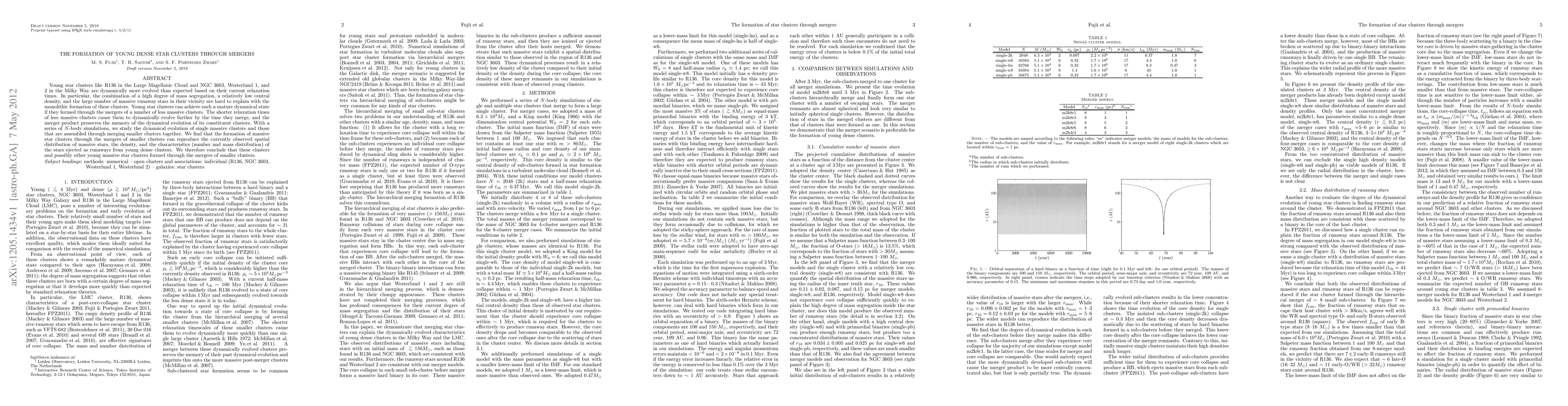 This paper investigates the formation of young dense star clusters through mergers, suggesting that clusters like R136 and NGC 3603 formed by merging smaller clusters, which explains their advanced dynamical state. The simulations show that such mergers can reproduce observed characteristics of massive star clusters, supporting the merger hypothesis.
