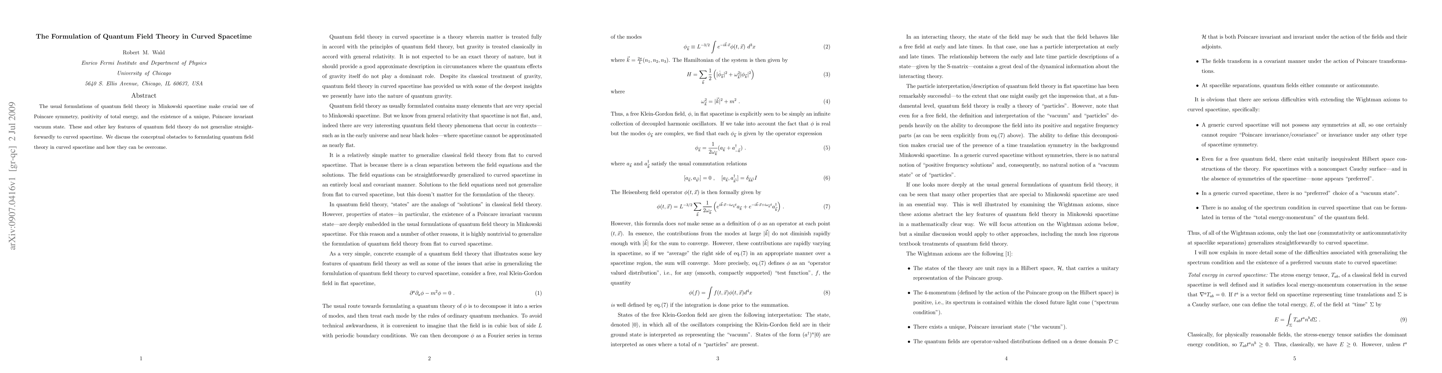 This paper explores the challenges in extending standard quantum field theory, which relies on Poincare symmetry and a unique vacuum state, to curved spacetimes. It identifies conceptual obstacles and proposes ways to overcome them for a viable formulation in such environments.