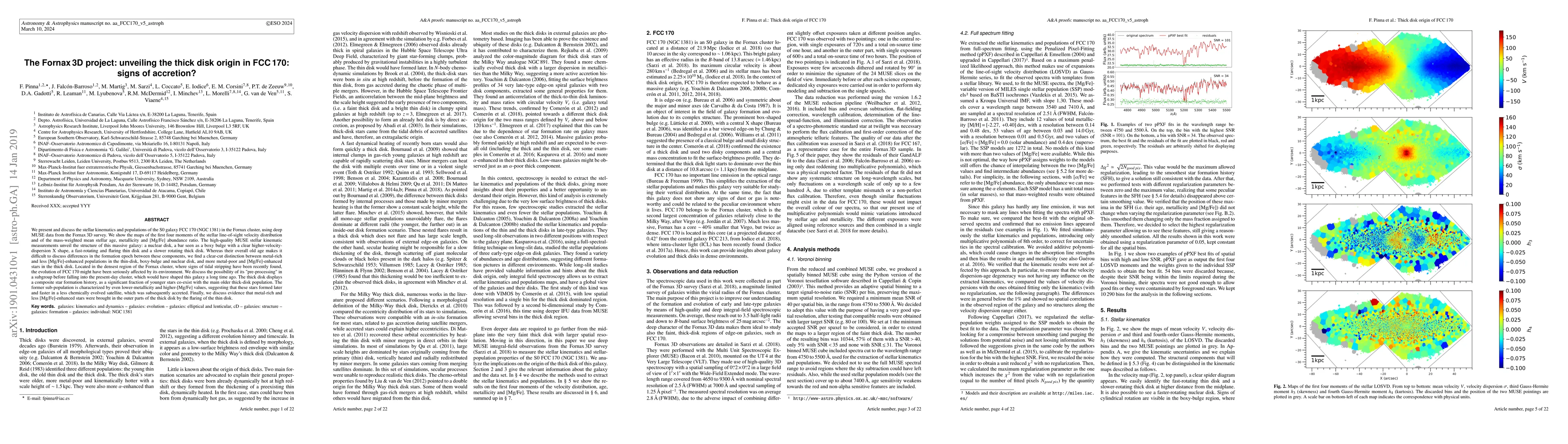 We present and discuss the stellar kinematics and populations of the S0 galaxy FCC 170 (NGC 1381) in the Fornax cluster, using deep MUSE data from the Fornax 3D survey. We show the maps of the first four moments of the stellar line-of-sight velocity distribution and of the mass-weighted mean stellar age, metallicity and [Mg/Fe] abundance ratio. The high-quality MUSE stellar kinematic measurements unveil the structure of this massive galaxy: a nuclear disk, a bar seen as a boxy bulge with a clear higher-velocity-dispersion X shape, a fast-rotating and flaring thin disk and a slower rotating thick disk. Whereas their overall old age makes it difficult to discuss differences in the formation epoch between these components, we find a clear-cut distinction between metal-rich and less [Mg/Fe]-enhanced populations in the thin-disk, boxy-bulge and nuclear disk, and more metal-poor and [Mg/Fe]-enhanced stars in the thick disk. Located in the densest region of the Fornax cluster, where signs of tidal stripping have been recently found, the evolution of FCC 170 might have been seriously affected by its environment. We discuss the possibility of its "pre-processing" in a subgroup before falling into the present-day cluster, which would have shaped this galaxy a long time ago. The thick disk displays a composite star formation history, as a significant fraction of younger stars co-exist with the main older thick-disk population. The former sub-population is characterized by even lower-metallicity and higher-[Mg/Fe] values, suggesting that these stars formed later and faster in a less chemically evolved satellite, which was subsequently accreted. Finally, we discuss evidence that metal-rich and less [Mg/Fe]-enhanced stars were brought in the outer parts of the thick disk by the flaring of the thin disk.