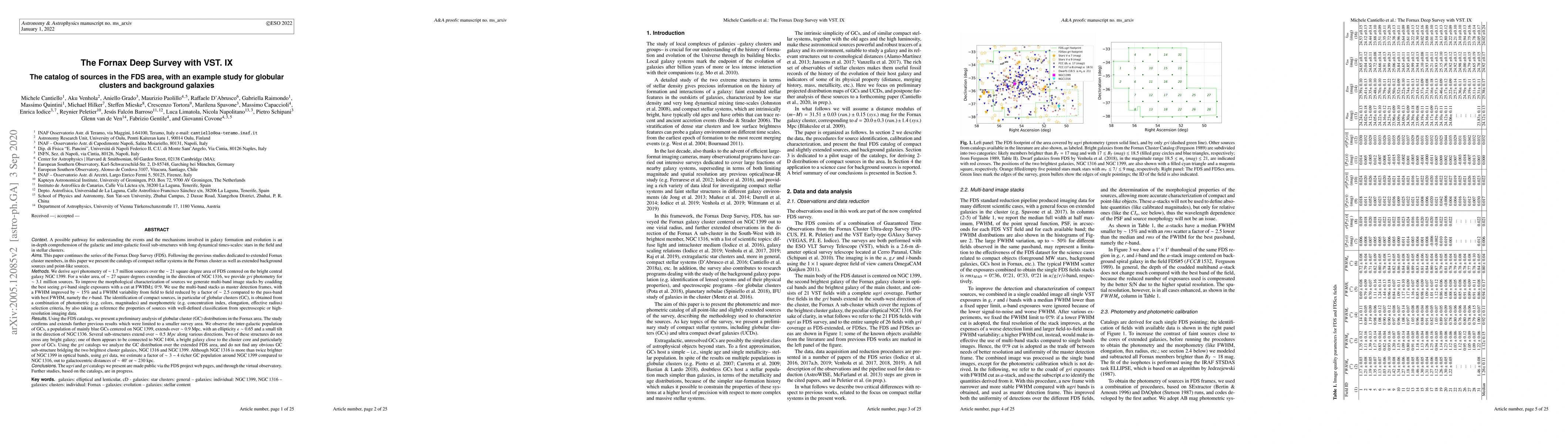 This paper presents catalogs of compact stellar systems and extended background sources from the Fornax Deep Survey (FDS), including ugri photometry for ~1.7 million sources in a 21 sq. degree area. It analyzes globular cluster distributions and finds a richer GC population around NGC1399 compared to NGC1316, despite the latter's greater brightness.