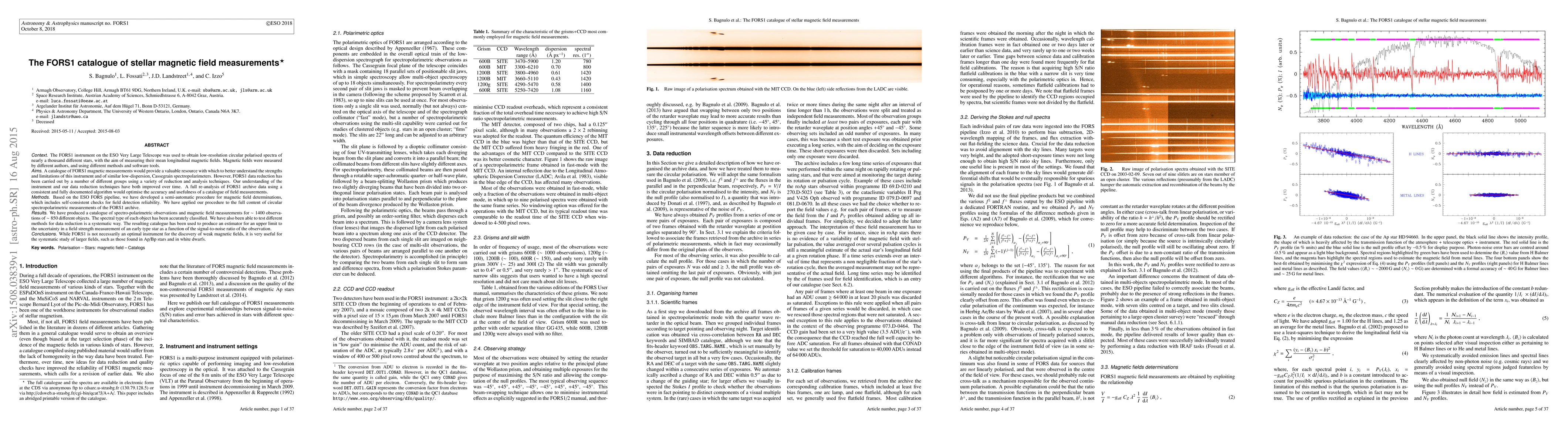 A new catalogue of stellar magnetic field measurements has been created using the FORS1 instrument, allowing for a systematic study of larger fields in stars like Ap/Bp stars and white dwarfs.