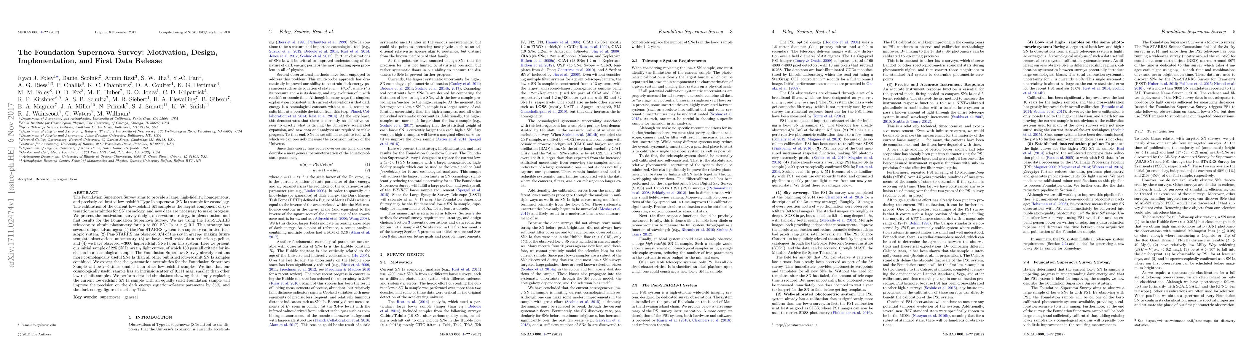 The Foundation Supernova Survey aims to provide a large, high-fidelity, homogeneous, and precisely-calibrated low-redshift Type Ia supernova (SN Ia) sample for cosmology. The calibration of the current low-redshift SN sample is the largest component of systematic uncertainties for SN cosmology, and new data are necessary to make progress. We present the motivation, survey design, observation strategy, implementation, and first results for the Foundation Supernova Survey. We are using the Pan-STARRS telescope to obtain photometry for up to 800 SNe Ia at z < 0.1. This strategy has several unique advantages: (1) the Pan-STARRS system is a superbly calibrated telescopic system, (2) Pan-STARRS has observed 3/4 of the sky in grizy making future template observations unnecessary, (3) we have a well-tested data-reduction pipeline, and (4) we have observed ~3000 high-redshift SNe Ia on this system. Here we present our initial sample of 225 SN Ia griz light curves, of which 180 pass all criteria for inclusion in a cosmological sample. The Foundation Supernova Survey already contains more cosmologically useful SNe Ia than all other published low-redshift SN Ia samples combined. We expect that the systematic uncertainties for the Foundation Supernova Sample will be 2-3 times smaller than other low-redshift samples. We find that our cosmologically useful sample has an intrinsic scatter of 0.111 mag, smaller than other low-redshift samples. We perform detailed simulations showing that simply replacing the current low-redshift SN Ia sample with an equally sized Foundation sample will improve the precision on the dark energy equation-of-state parameter by 35%, and the dark energy figure-of-merit by 72%.