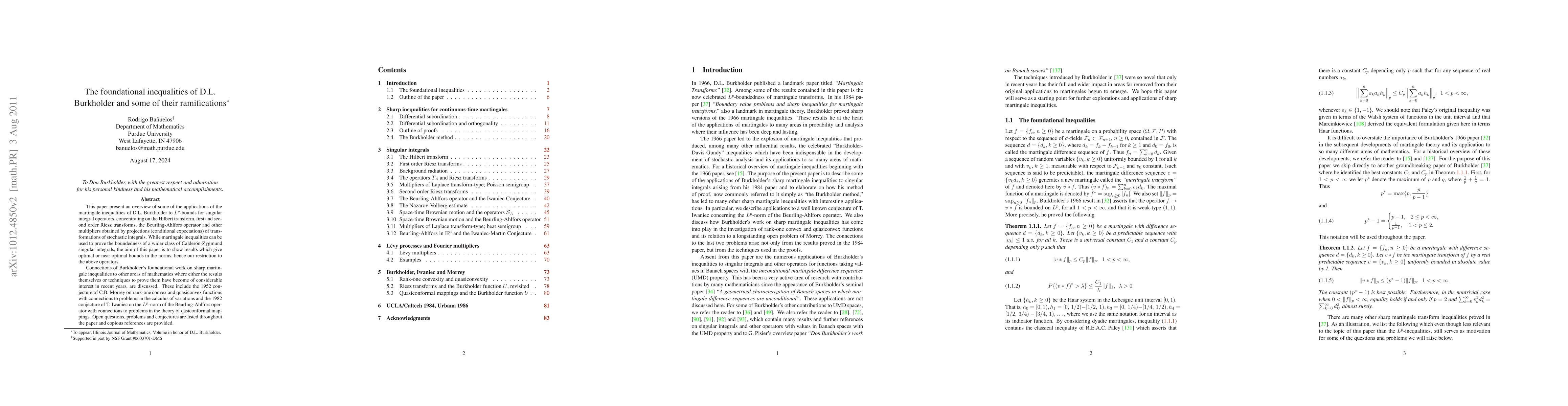 This paper present an overview of some of the applications of the martingale inequalities of D.L. Burkholder to $L^p$-bounds for singular integral operators, concentrating on the Hilbert transform, first and second order Riesz transforms, the Beurling-Ahlfors operator and other multipliers obtained by projections (conditional expectations) of transformations of stochastic integrals. While martingale inequalities can be used to prove the boundedness of a wider class of Calder\'on-Zygmund singular integrals, the aim of this paper is to show results which give optimal or near optimal bounds in the norms, hence our restriction to the above operators. Connections of Burkholder's foundational work on sharp martingale inequalities to other areas of mathematics where either the results themselves or techniques to prove them have become of considerable interest in recent years, are discussed. These include the 1952 conjecture of C.B. Morrey on rank-one convex and quasiconvex functions with connections to problems in the calculus of variations and the 1982 conjecture of T. Iwaniec on the $L^p$-norm of the Beurling-Ahlfors operator with connections to problems in the theory of qasiconformal mappings. Open questions, problems and conjectures are listed throughout the paper and copious references are provided.