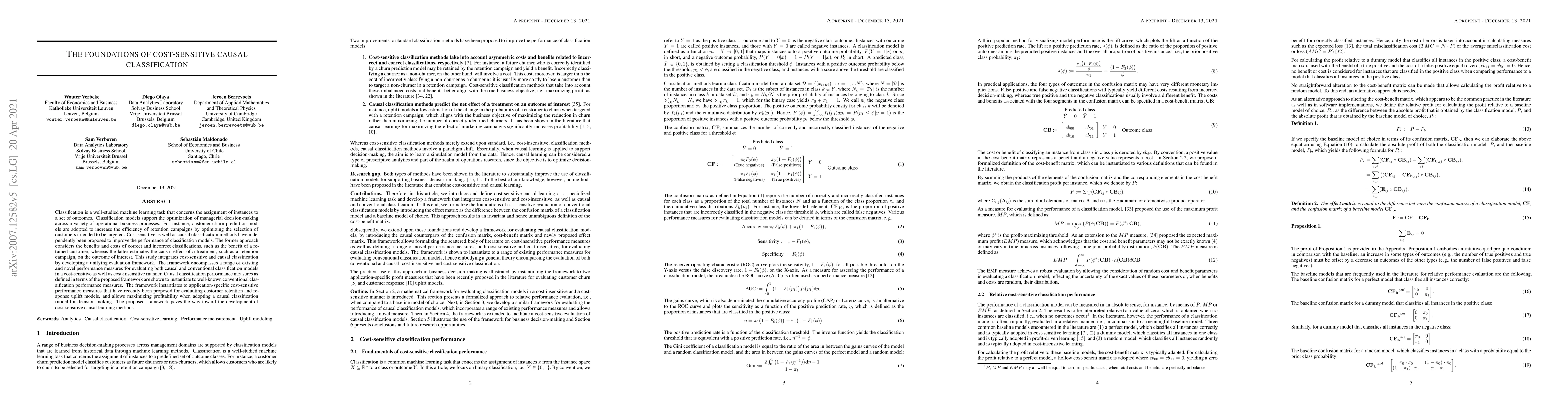 This paper integrates cost-sensitive and causal classification, presenting a unifying evaluation framework with novel performance measures. The framework allows for the optimization of business decisions, particularly in customer retention, by maximizing profitability through causal classification models.