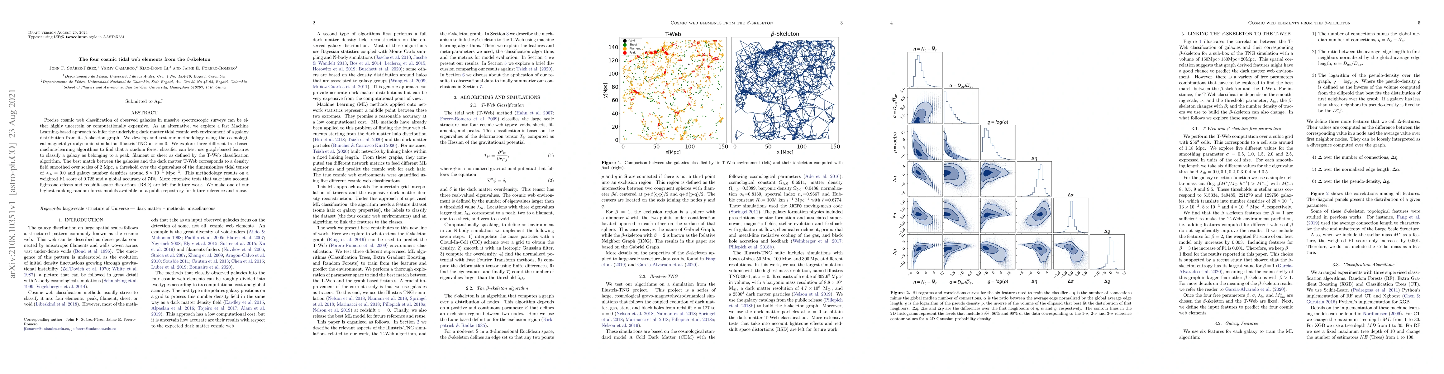 Precise cosmic web classification of observed galaxies in massive spectroscopic surveys can be either highly uncertain or computationally expensive. As an alternative, we explore a fast Machine Learning-based approach to infer the underlying dark matter tidal cosmic web environment of a galaxy distribution from its $\beta$-skeleton graph. We develop and test our methodology using the cosmological magnetohydrodynamic simulation Illustris-TNG at $z=0$. We explore three different tree-based machine-learning algorithms to find that a random forest classifier can best use graph-based features to classify a galaxy as belonging to a peak, filament or sheet as defined by the T-Web classification algorithm. The best match between the galaxies and the dark matter T-Web corresponds to a density field smoothed over scales of $2$ Mpc, a threshold over the eigenvalues of the dimensionless tidal tensor of $\lambda_{\rm{th}}=0.0$ and galaxy number densities around $8\times 10^{-3}$ Mpc$^{-3}$. This methodology results on a weighted F1 score of 0.728 and a global accuracy of 74\%. More extensive tests that take into account lightcone effects and redshift space distortions (RSD) are left for future work. We make one of our highest ranking random forest models available on a public repository for future reference and reuse.