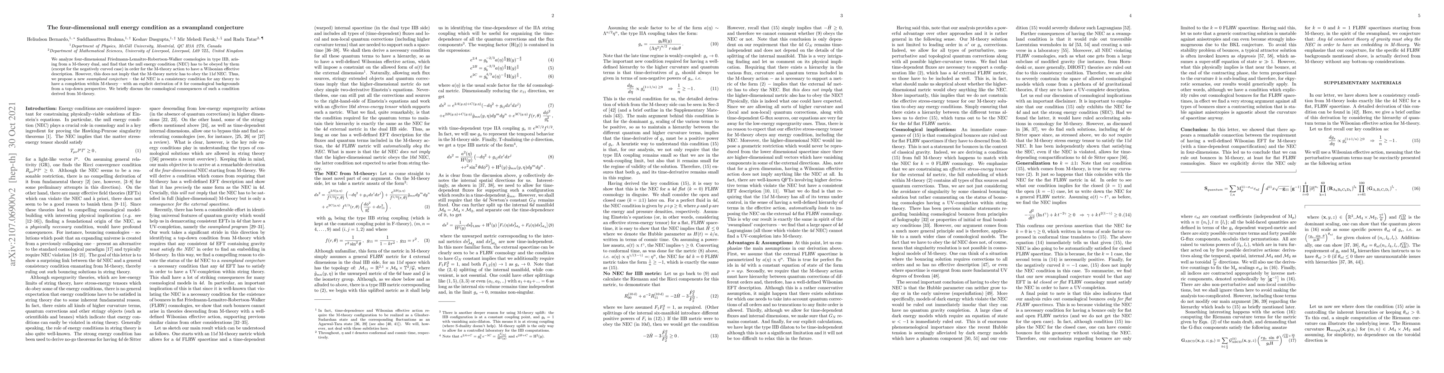 Researchers propose a new swampland conjecture: the 4d null energy condition is necessary for a theory to have a Wilsonian effective description within M-theory, with cosmological backgrounds violating this condition.