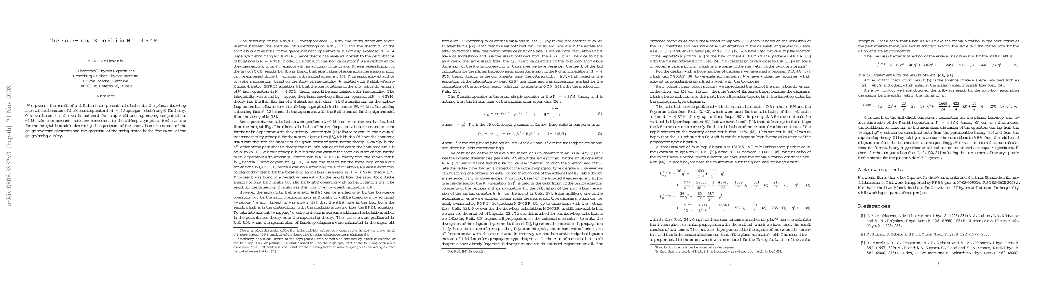 This paper reports a direct calculation of the four-loop anomalous dimension of the Konishi operator in N=4 Supersymmetric Yang-Mills theory, confirming previous results from superfield and superstring approaches, and supporting the gauge/string duality framework.