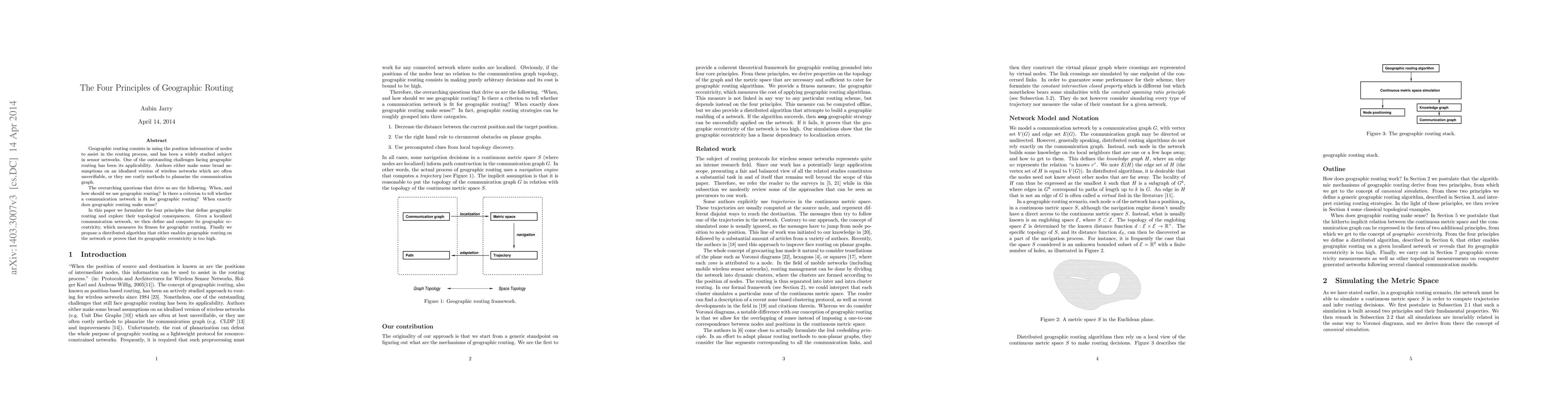 This paper introduces the Four Principles of Geographic Routing to improve its applicability, proposing a method to calculate a network's fitness for geographic routing and a distributed algorithm to enable or rule out its use.