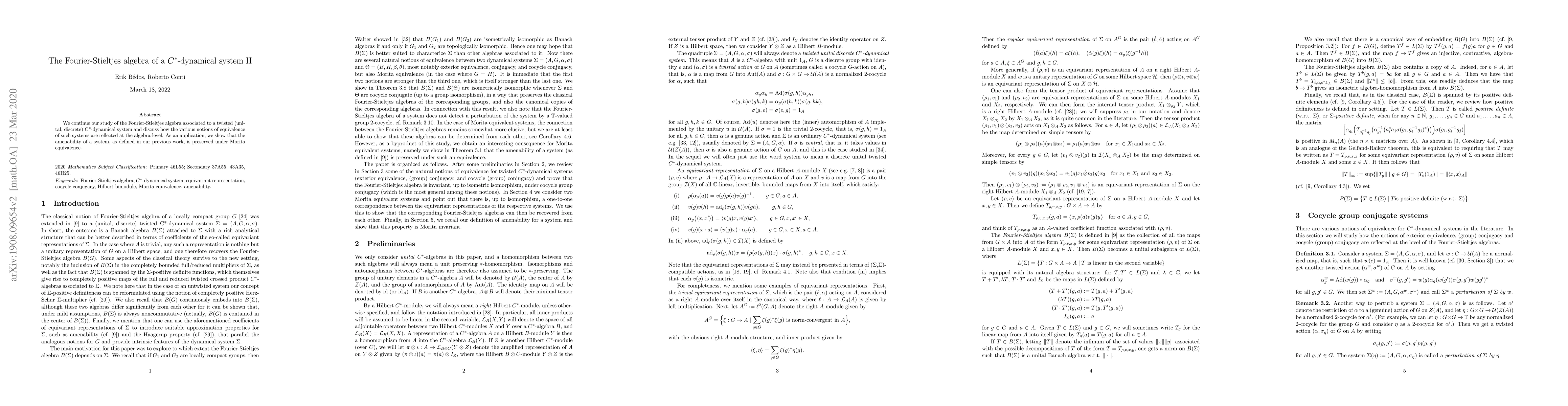 We continue our study of the Fourier-Stieltjes algebra associated to a twisted (unital, discrete) C*-dynamical system and discuss how the various notions of equivalence of such systems are reflected at the algebra-level. As an application, we show that the amenability of a system, as defined in our previous work, is preserved under Morita equivalence.