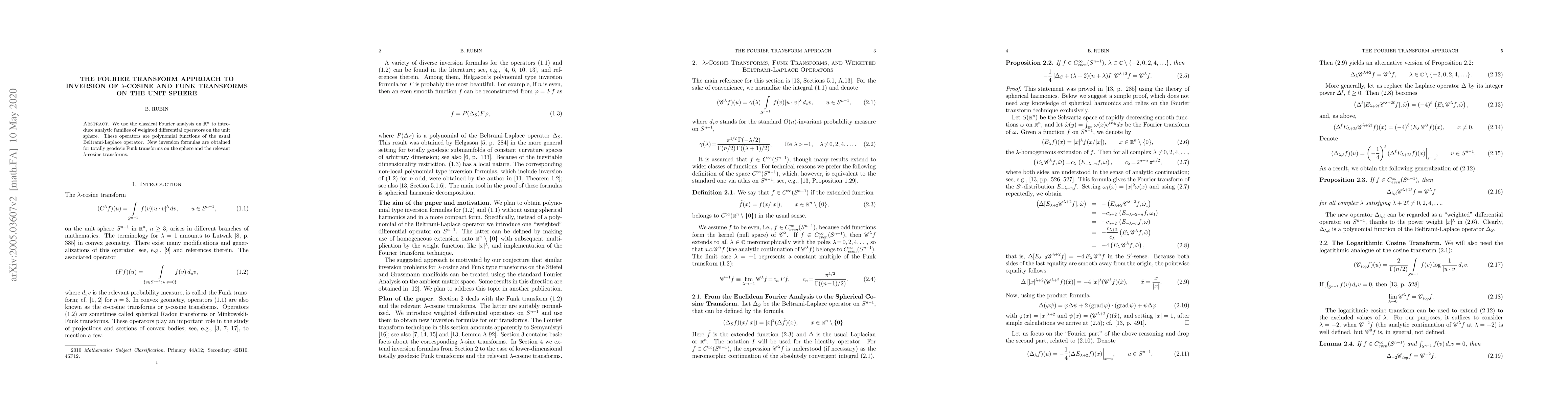 Summary: The paper utilizes Fourier analysis to develop weighted differential operators on the unit sphere, resulting in new inversion formulas for Funk transforms and lambda-cosine transforms. These techniques enhance the understanding and application of these mathematical transforms.