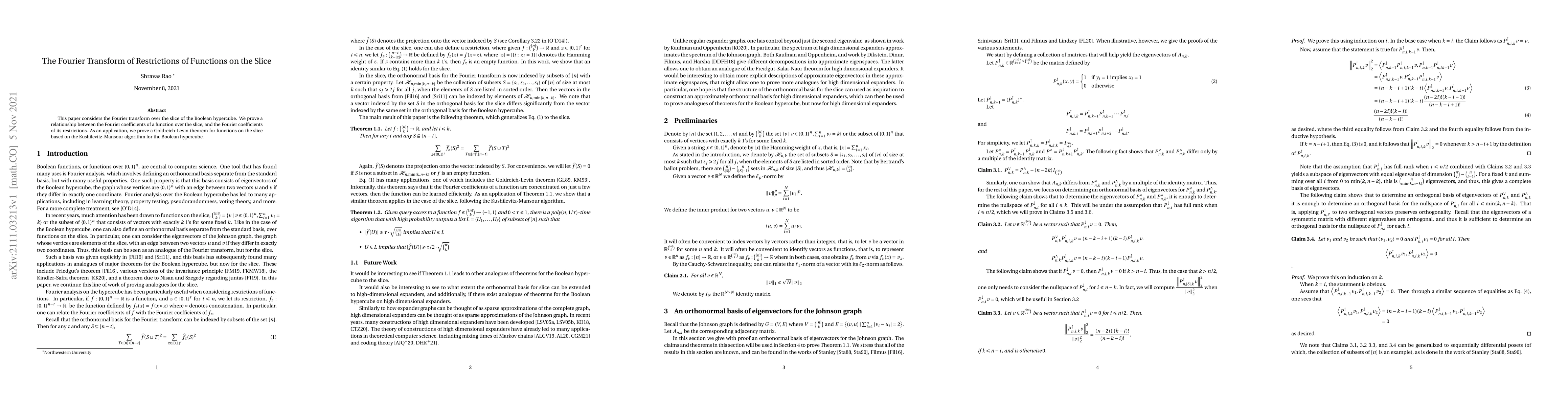 This paper establishes a connection between the Fourier coefficients of a function over a slice of the Boolean hypercube and those of its restrictions. It also applies this relationship to prove a Goldreich-Levin theorem for functions on the slice using the Kushilevitz-Mansour algorithm.