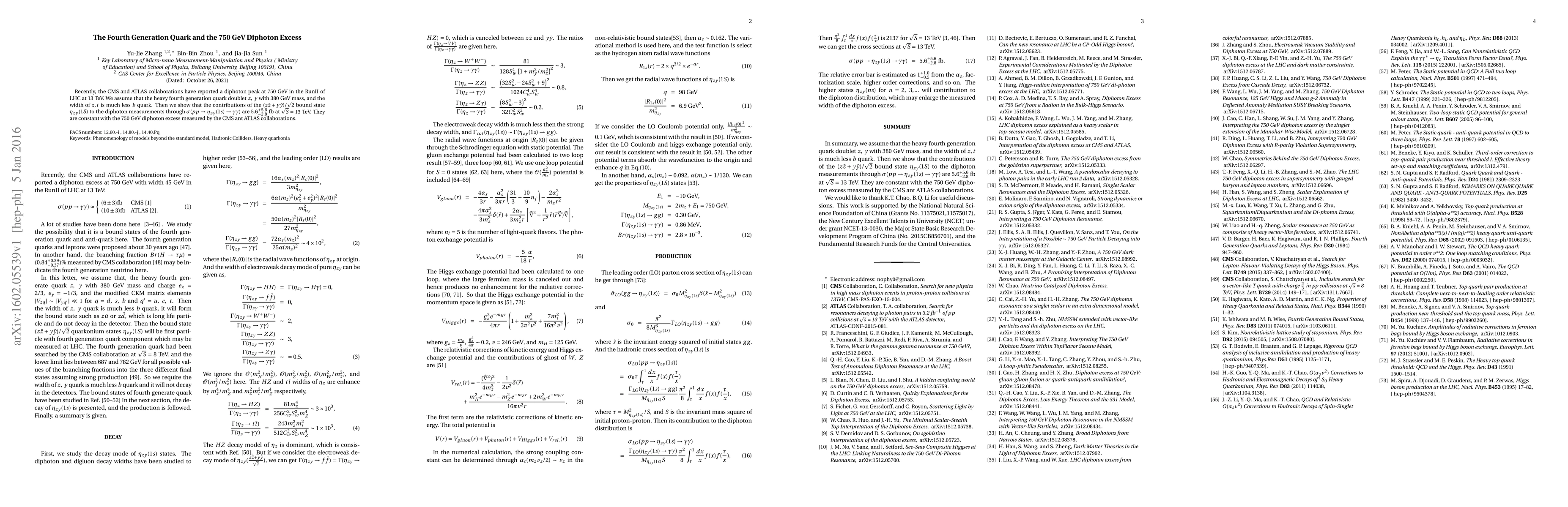 This paper explores the potential contribution of a heavy fourth generation quark doublet to the observed 750 GeV diphoton excess at the LHC. It calculates the cross-section for the bound state $\eta_{zy}(1S)$ decaying to diphotons, finding it consistent with the reported excess.