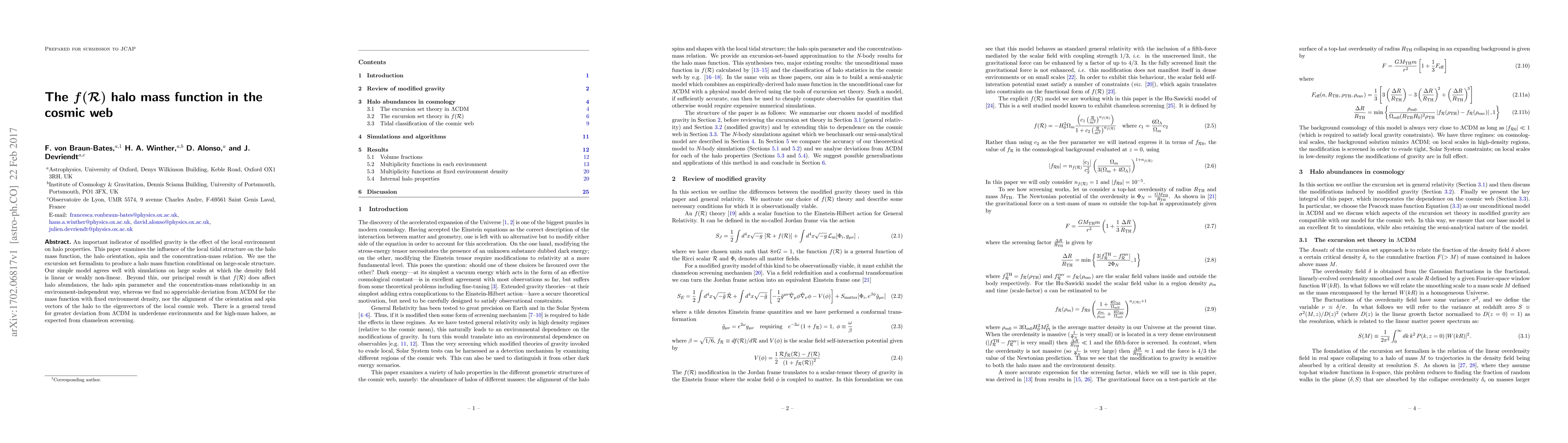 An important indicator of modified gravity is the effect of the local environment on halo properties. This paper examines the influence of the local tidal structure on the halo mass function, the halo orientation, spin and the concentration-mass relation. We generalise the excursion set formalism to produce a halo mass function conditional on large-scale structure. Our model agrees well with simulations on large scales at which the density field is linear or weakly non-linear. Beyond this, our principal result is that $f(R)$ does affect halo abundances, the halo spin parameter and the concentration-mass relationship in an environment-independent way, whereas we find no appreciable deviation from $\Lambda$CDM for the mass function with fixed environment density, nor the alignment of the orientation and spin vectors of the halo to the eigenvectors of the local cosmic web. There is a general trend for greater deviation from $\Lambda$CDM in underdense environments and for high-mass haloes, as expected from chameleon screening.