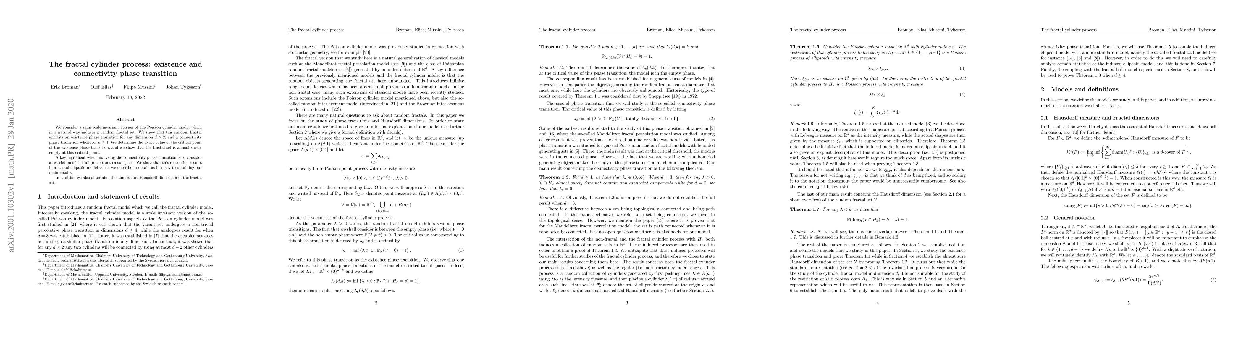 A combination of Monte Carlo simulations and analytical calculations were used to study the behavior of the fractal cylinder process.