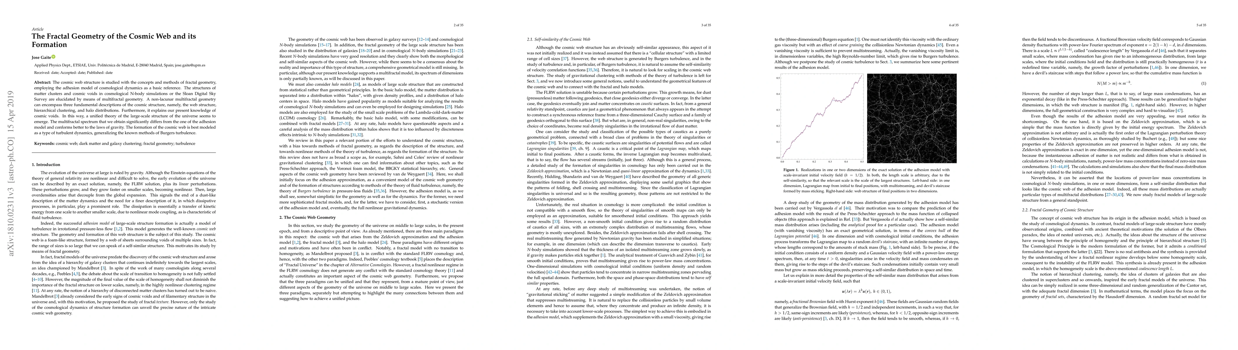 This paper explores the cosmic web's structure using fractal and multifractal geometry, revealing insights into the web's formation and the distribution of matter clusters and cosmic voids. It proposes a unified theory of the universe's large-scale structure, suggesting that the cosmic web's formation aligns more closely with turbulent dynamics than the adhesion model.