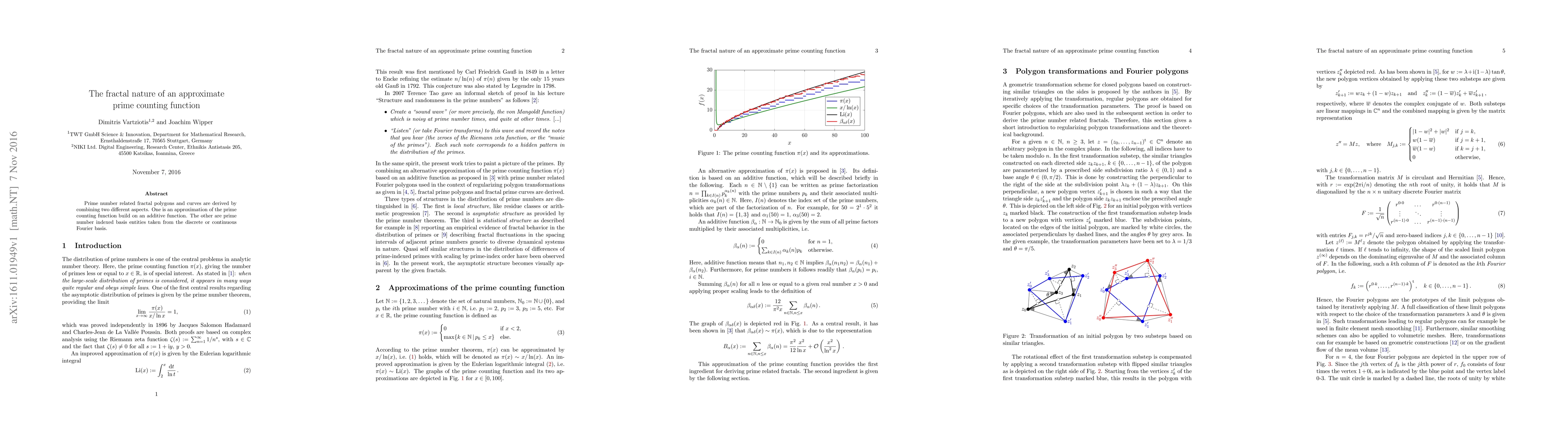 Summary: The paper explores the creation of fractal polygons and curves related to prime numbers by merging an additive approximation of the prime counting function with prime number indexed basis entities from Fourier analysis, revealing intricate fractal patterns.