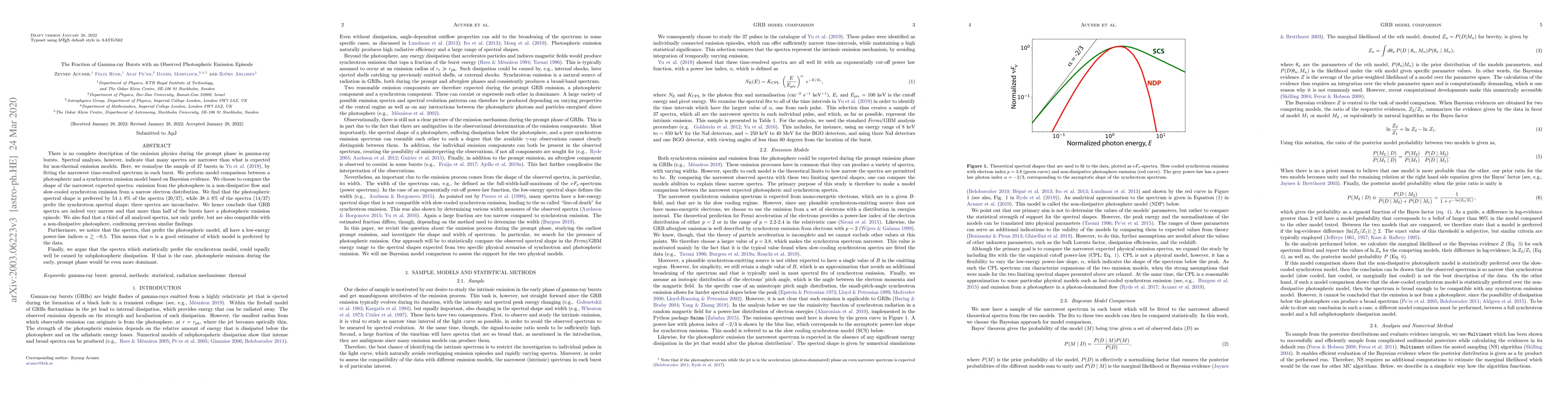 Researchers found that more than half of gamma-ray bursts exhibit a photospheric emission episode, and spectra with low-energy power-law indices prefer the photospheric model, suggesting non-dissipative photosphere conditions.