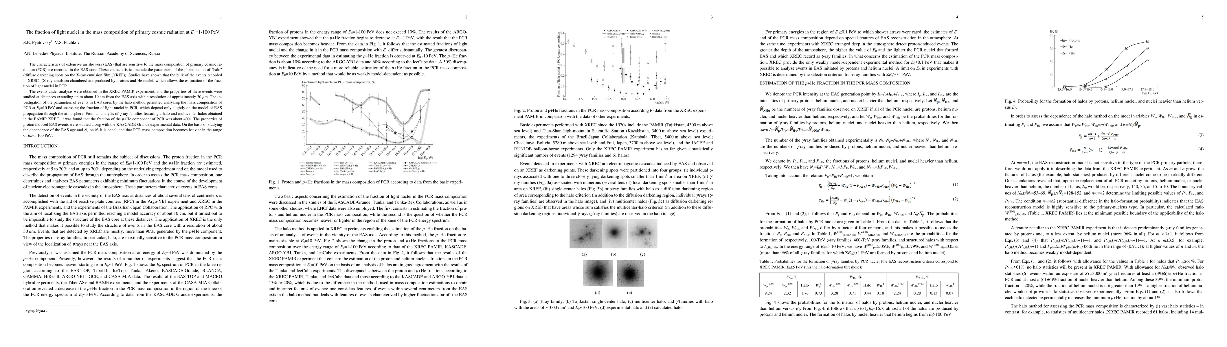 The characteristics of extensive air showers that are sensitive to the mass composition of primary cosmic radiation are recorded in the EAS core. These characteristics include the parameters of the phenomenon of "halo". Studies have shown that the bulk of the events recorded in XRECs are produced by protons and He nuclei, which allows the estimation of the fraction of light nuclei in PCR. The events under analysis were obtained in the XREC PAMIR experiment, and the properties of these events were studied at distances extending up to about 10 cm from the EAS axis with a resolution of approximately 30 micro m. The investigation of the parameters of events in EAS cores by the halo method permitted analyzing the mass composition of PCR at E0=10 PeV and assessing the fraction of light nuclei in PCR, which depend only slightly on the model of EAS propagation through the atmosphere. From an analysis of gamma-ray families featuring a halo and multicenter halos obtained in the PAMIR XREC, it was found that the fraction of the p+He component of PCR was about 40%.