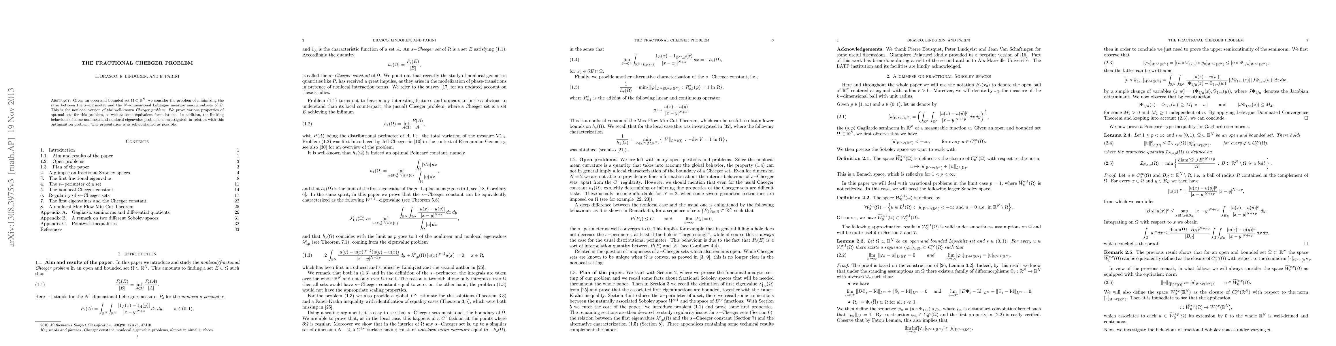 This paper solves the fractional Cheeger problem, which involves minimizing the ratio of a subset's perimeter to its volume in an open bounded set. It also investigates limiting behaviors of nonlinear eigenvalue problems related to this optimization problem.