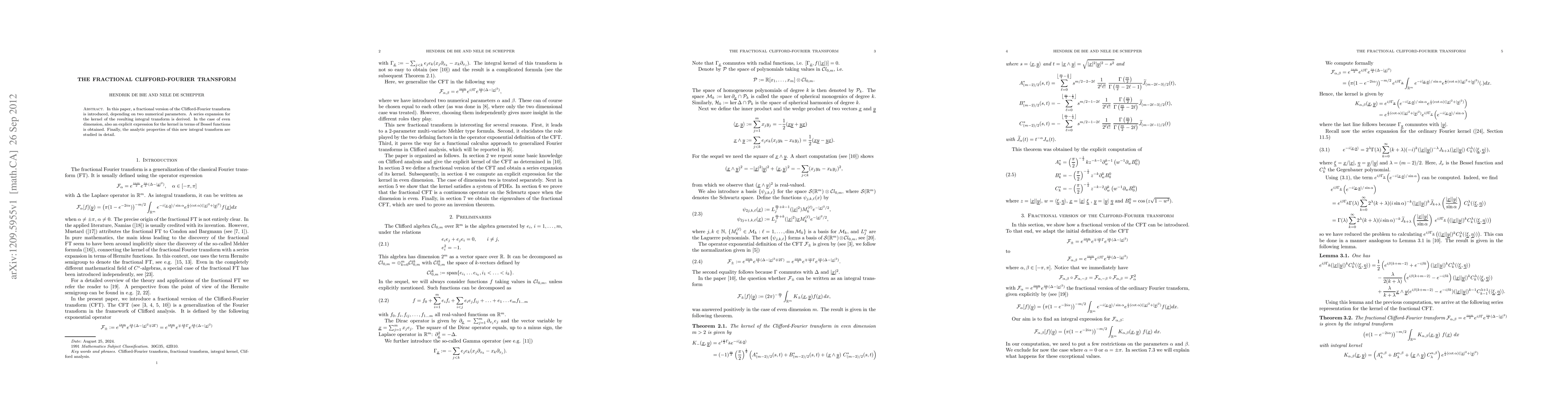 This paper introduces a fractional Clifford-Fourier transform with two parameters, derives its kernel's series expansion, and provides an explicit expression in even dimensions using Bessel functions. It also examines the analytic properties of the new integral transform in detail.