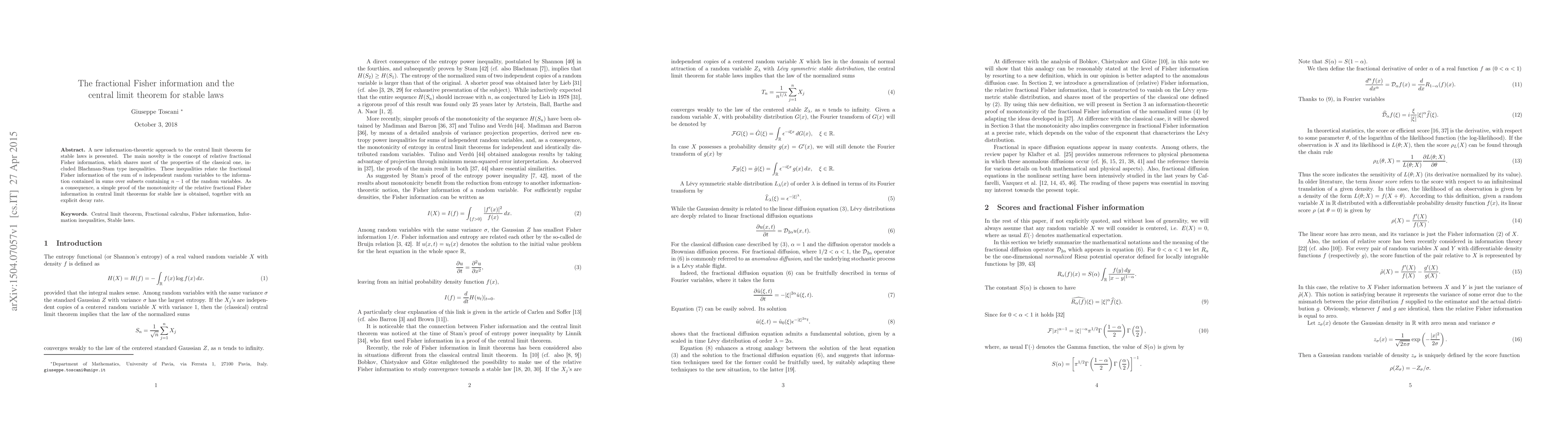 This paper introduces a new information-theoretic approach to the central limit theorem for stable laws using relative fractional Fisher information, proving its monotonicity and providing an explicit decay rate, supported by Blachman-Stam type inequalities.