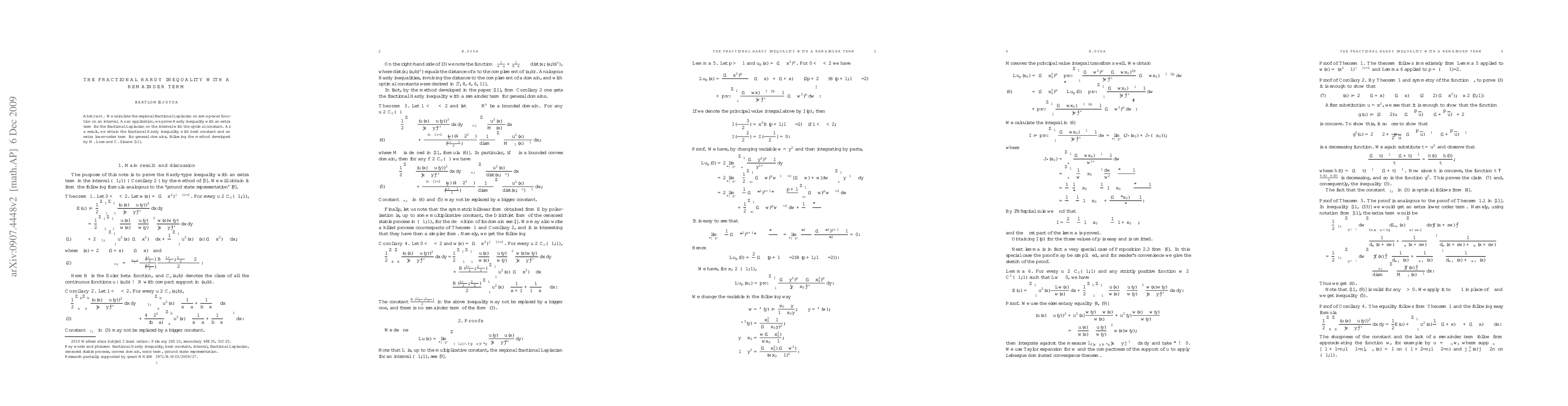 Researchers calculate a regional fractional Laplacian on power functions to prove a modified Hardy inequality with an optimal constant, leading to the development of a fractional Hardy inequality with best constant and lower-order term for general domains.