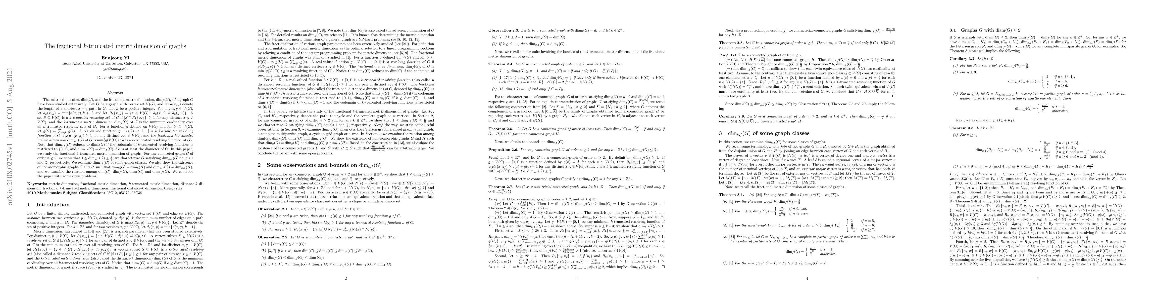 This paper investigates the fractional $k$-truncated metric dimension of graphs, introducing new concepts of $k$-truncated resolving sets and functions. It establishes bounds for $\dim_{k,f}(G)$ and characterizes graphs achieving these bounds, while also exploring relationships between various metric dimension measures.