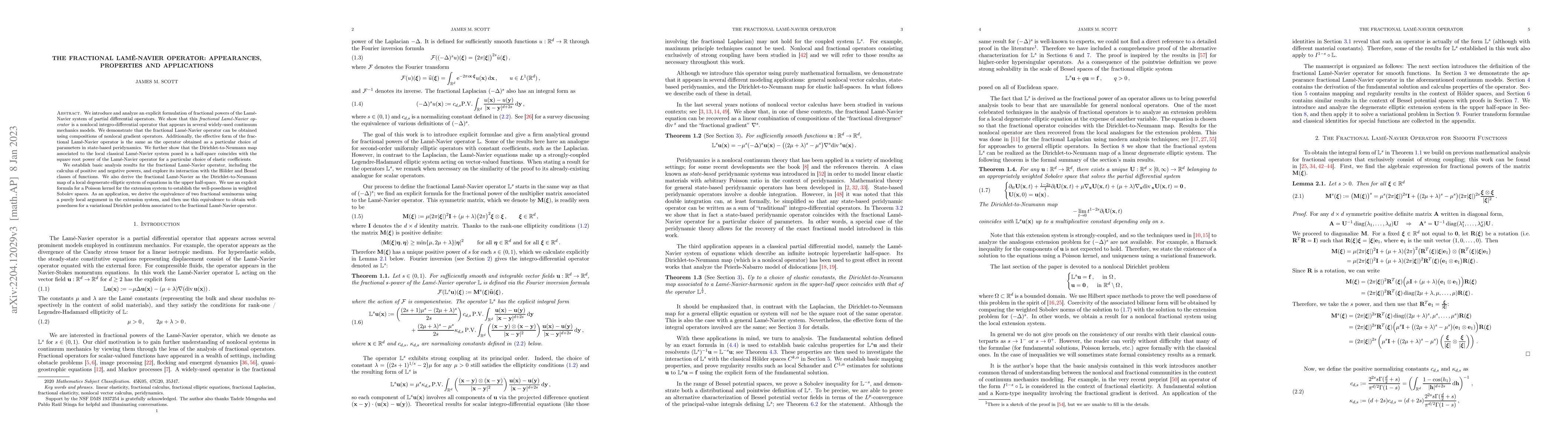 This paper introduces and analyzes the fractional Lam\'e-Navier operator, a nonlocal integro-differential operator appearing in continuum mechanics models. It establishes its analytical properties, including calculus of powers and interaction with function classes, and demonstrates its equivalence to a state-based peridynamics operator. The paper also proves well-posedness for a variational Dirichlet problem associated with the operator.