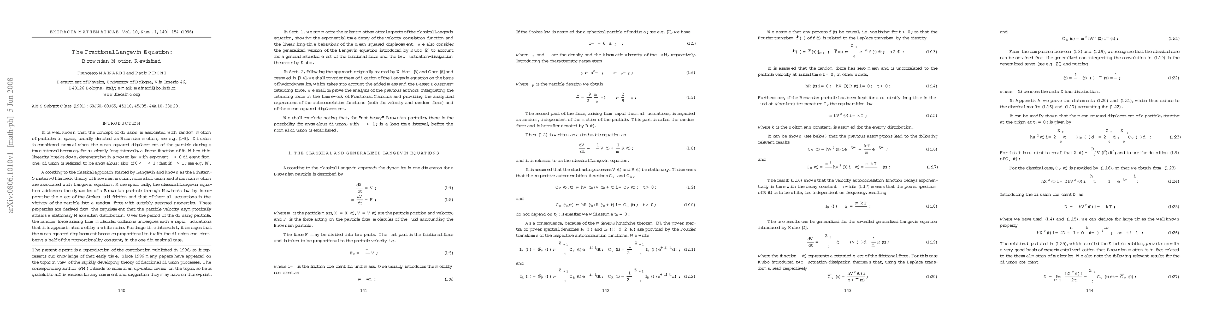This paper revisits Brownian motion using the fractional Langevin equation, a generalized form introduced by Kubo in 1966, which models it more realistically by incorporating hydrodynamic effects. Analytical expressions for correlation functions and mean squared displacement are derived, revealing a slower decay in velocity correlations and a potential misinterpretation of anomalous diffusion due to hydrodynamic retarding effects.