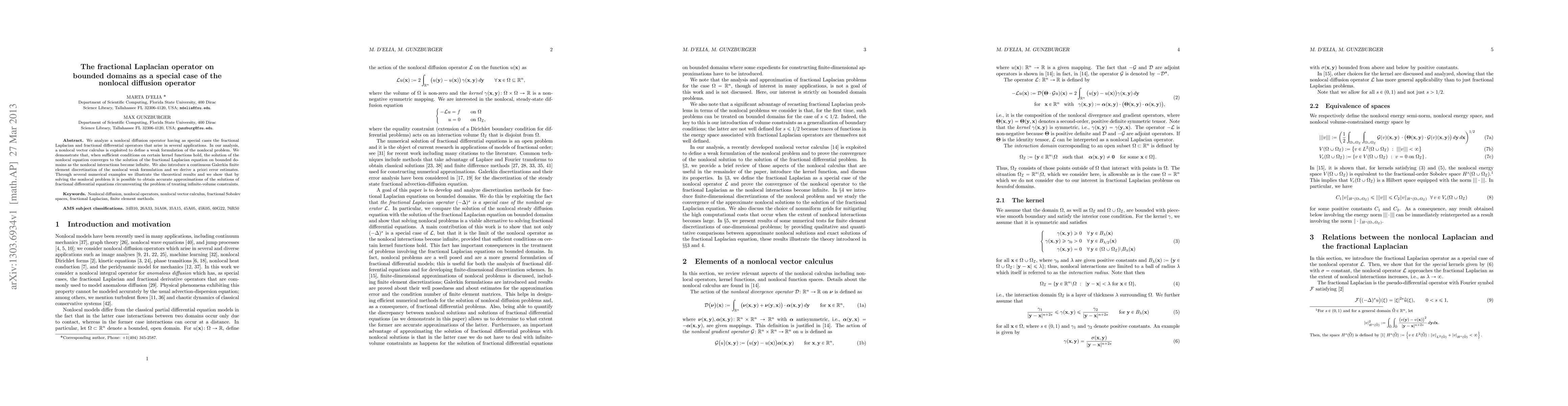 This paper explores a nonlocal diffusion operator that encompasses the fractional Laplacian as a special case, employing a nonlocal vector calculus for weak formulation. It demonstrates convergence of the nonlocal solution to the fractional Laplacian solution under certain conditions and presents a continuous Galerkin finite element method with derived error estimates, validated through numerical examples.