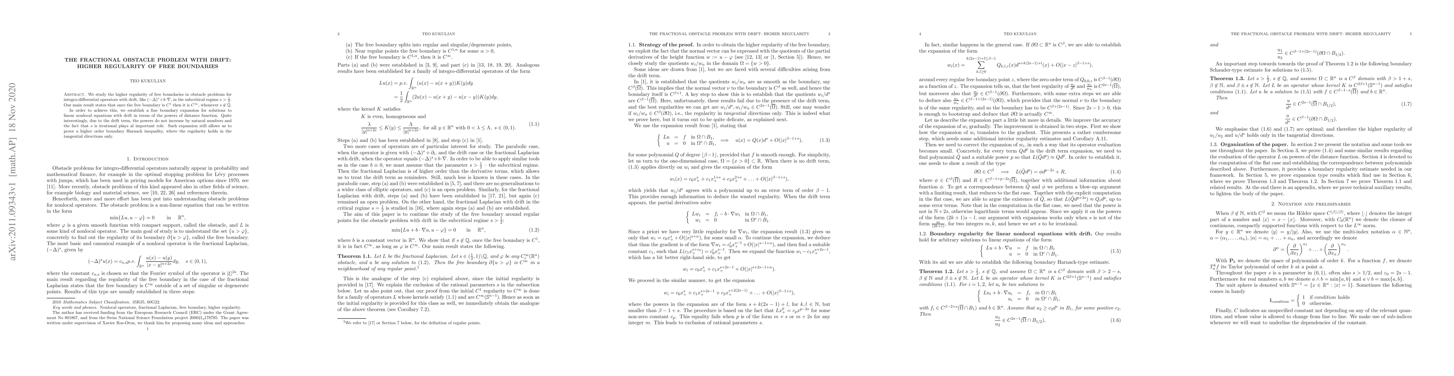 This work is significant as it advances the theory of fractional obstacle problems with drift, providing insights into the higher regularity of free boundaries, which is crucial for applications in various fields including material science and image processing.