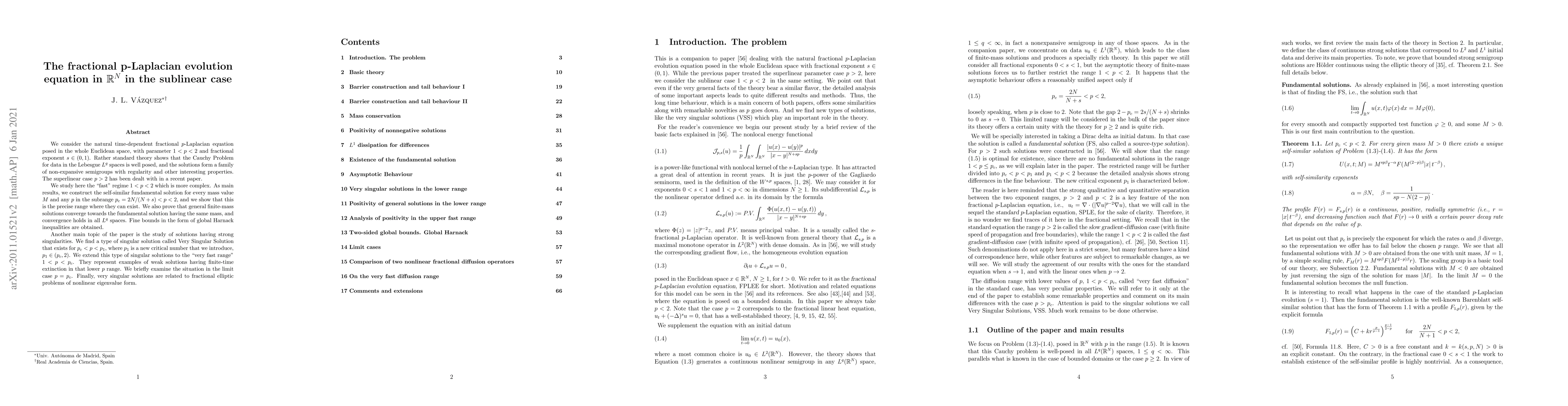 We consider the natural time-dependent fractional $p$-Laplacian equation posed in the whole Euclidean space, with parameter $1