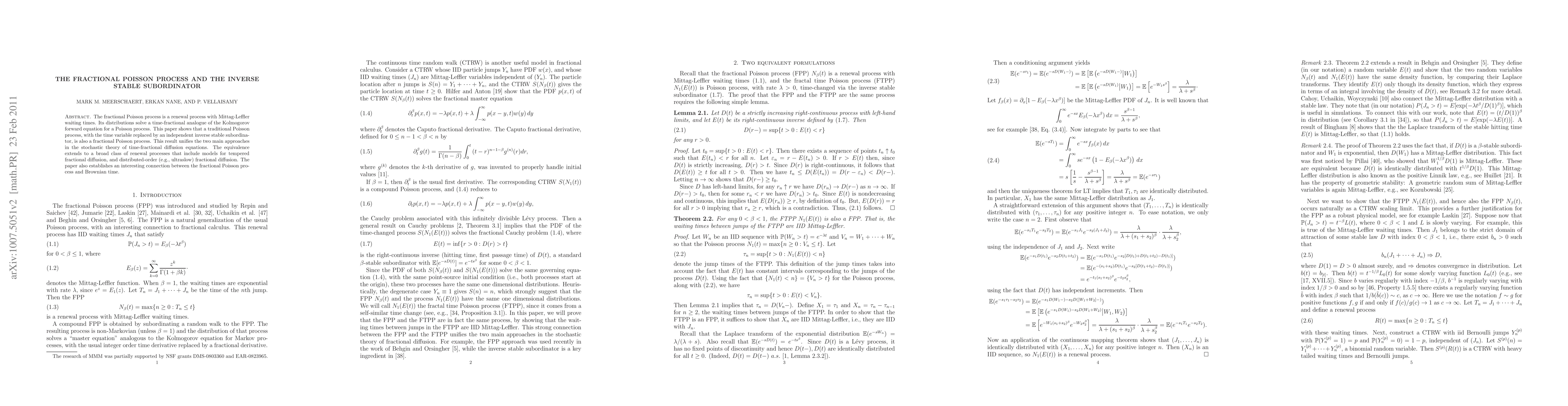 The fractional Poisson process is a renewal process with Mittag-Leffler waiting times. Its distributions solve a time-fractional analogue of the Kolmogorov forward equation for a Poisson process. This paper shows that a traditional Poisson process, with the time variable replaced by an independent inverse stable subordinator, is also a fractional Poisson process. This result unifies the two main approaches in the stochastic theory of time-fractional diffusion equations. The equivalence extends to a broad class of renewal processes that include models for tempered fractional diffusion, and distributed-order (e.g., ultraslow) fractional diffusion. The paper also establishes an interesting connection between the fractional Poisson process and Brownian time.