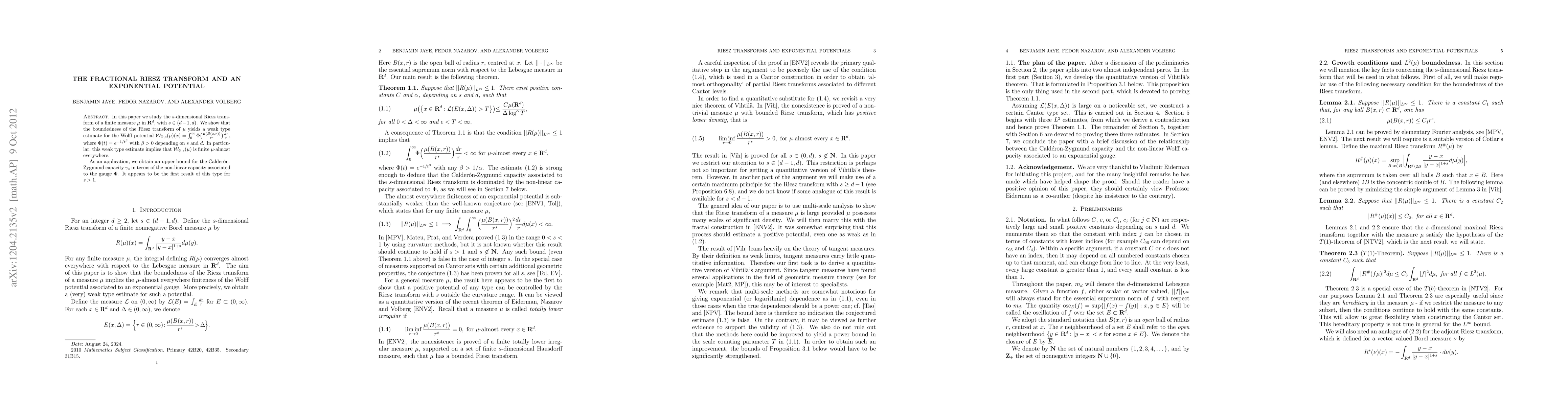 In this paper we study the $s$-dimensional Riesz transform of a finite measure $\mu$ in $\mathbf{R}^d$, with $s\in (d-1,d)$. We show that the boundedness of the Riesz transform of $\mu$ implies that a nonlinear potential of exponential type is finite $\mu$-almost everywhere. It appears to be the first result of this type for $s>1$.